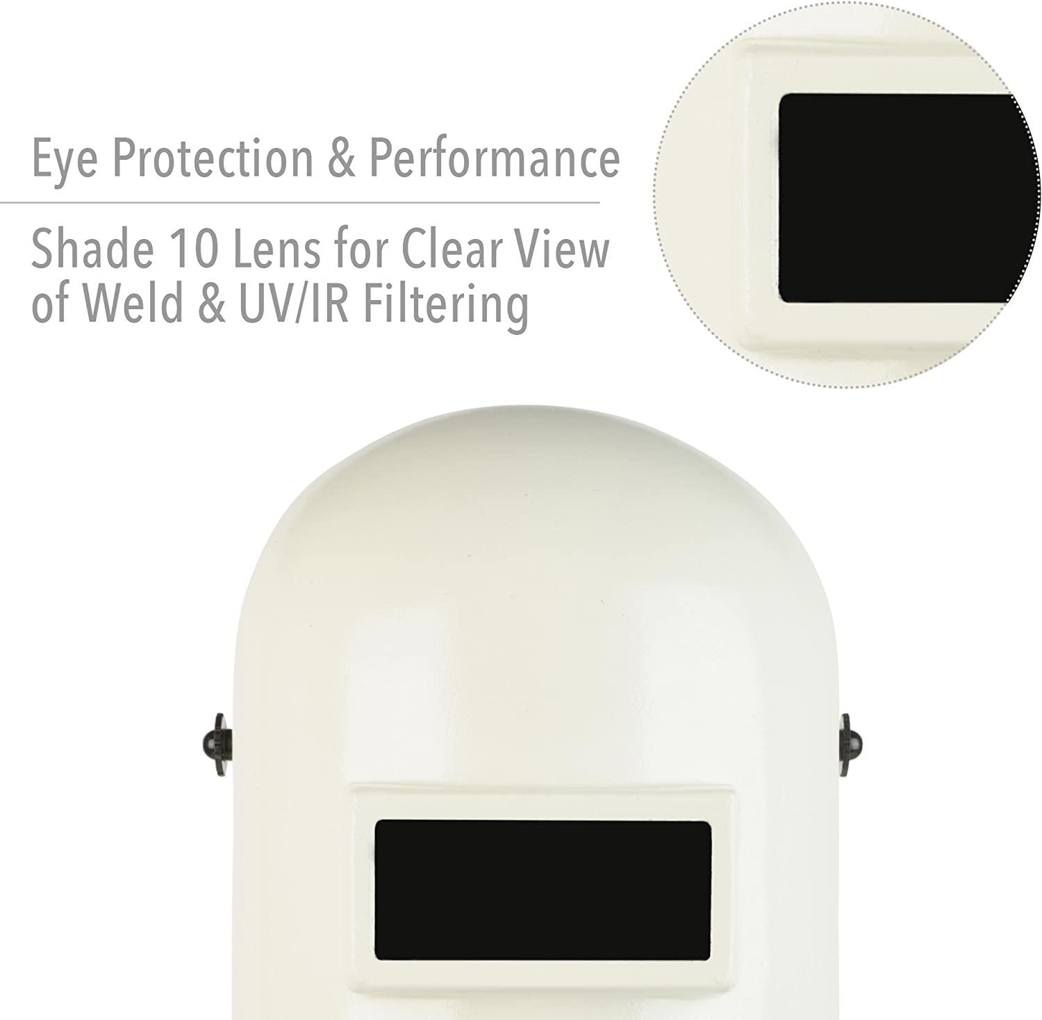 • SAFETY & CLEAR VISION: Pipeliner Welding Helmet features a 2" x 4" Shade 10 lens for clear viewing of weld puddle; filters out 100% of UV and IR wavelengths for maximum eye protection