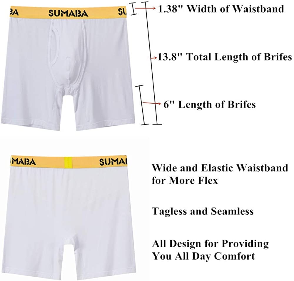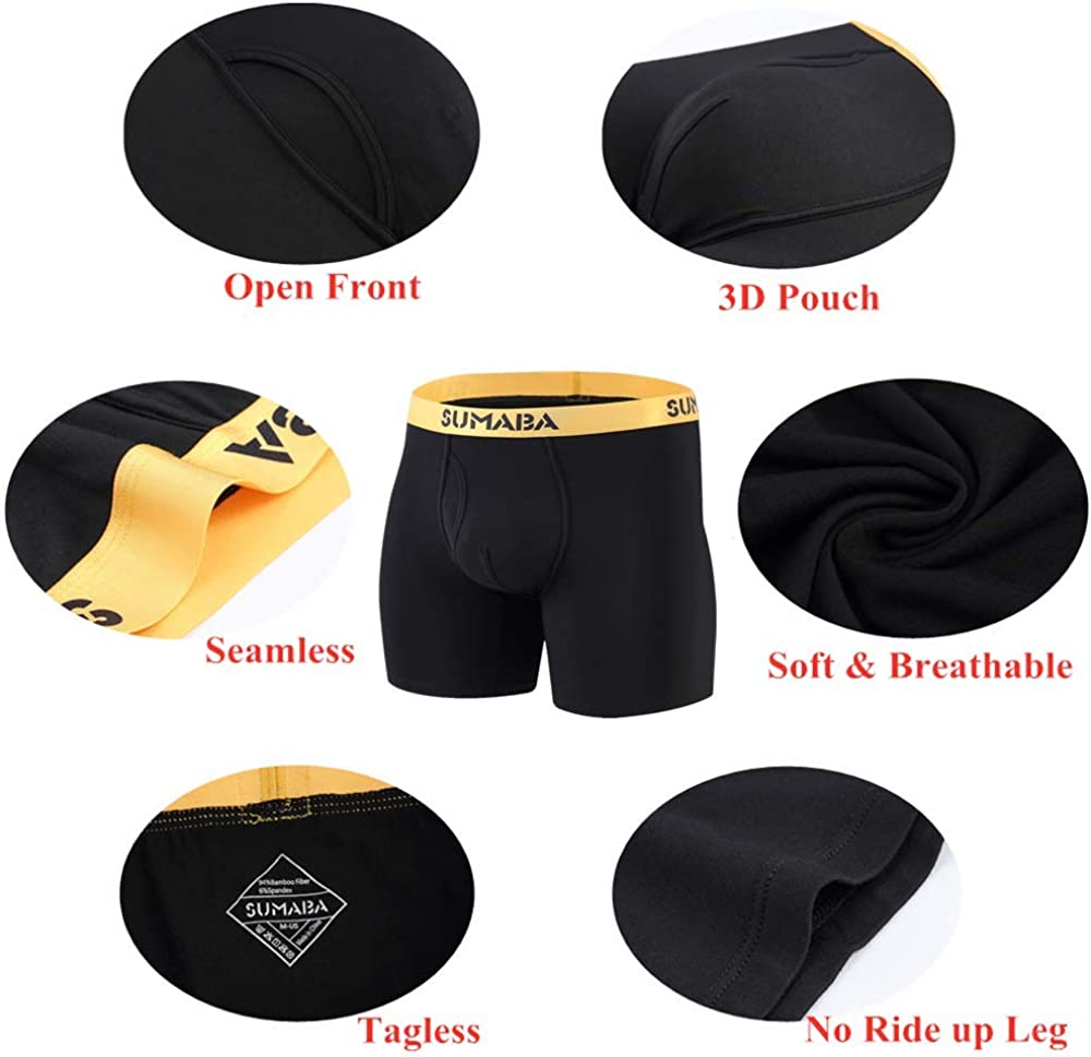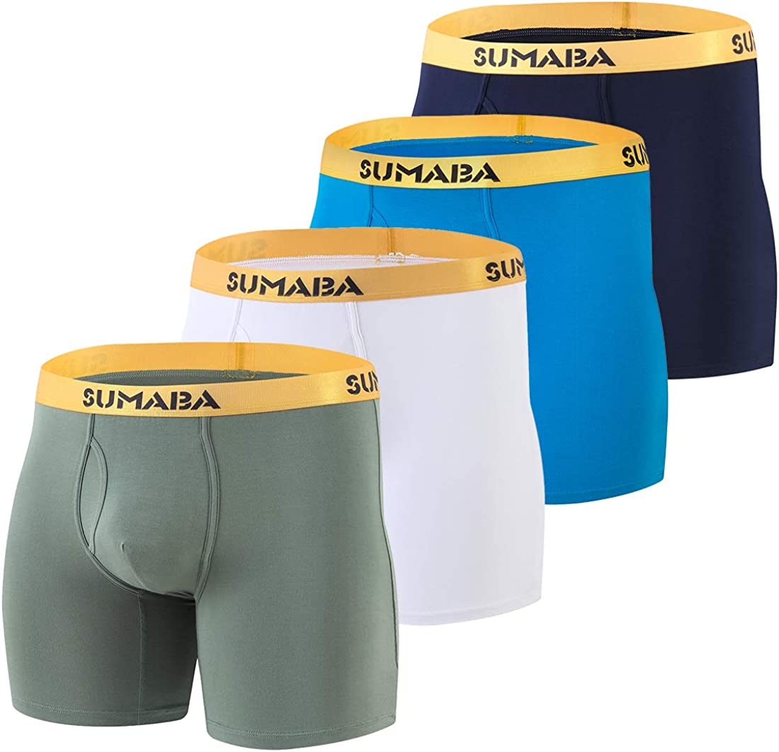 SUMABA Long Leg Men Underwear Boxer Briefs Fly with Pouch No Ride Up Bamboo Underpants for Men Breathable