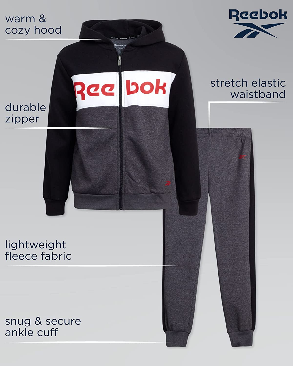 Reebok Boys’ Sweatsuit – Active Fleece Zip Hoodie Sweatshirt and Jogger Sweatpants (4-12)