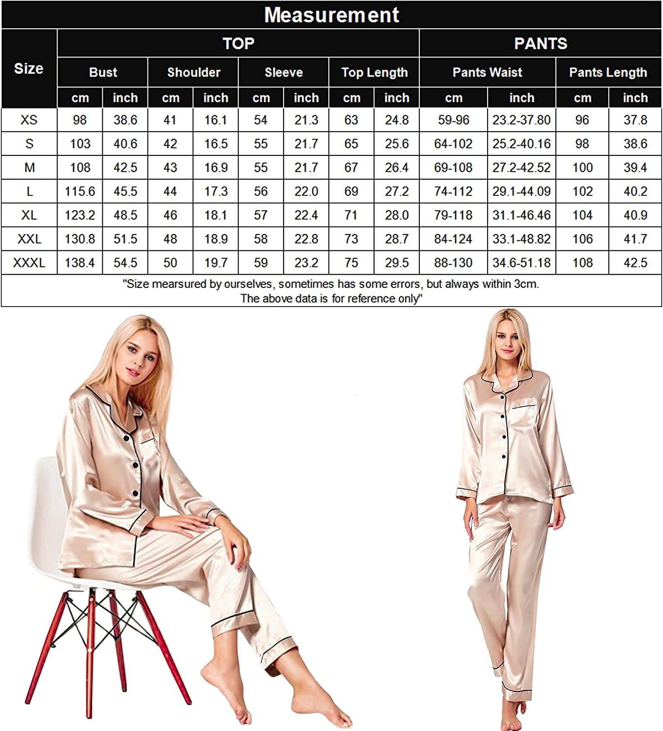 • Occasion: Women's Long Sleeve Silk Satin Pajamas Set, which is suitable for daily wearing and easy to match. Comfortable and suitable for lounging and sleeping, pajama party, girls day, bridal sleepwear, indoor, living room, bedroom, hotel, vacation, travel, and daily sleepwear.