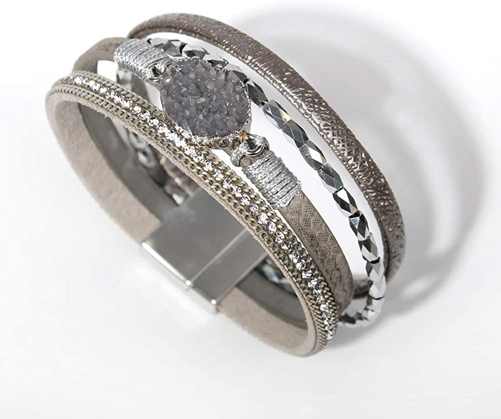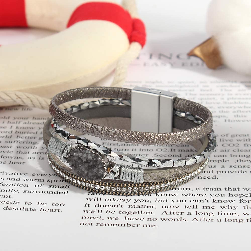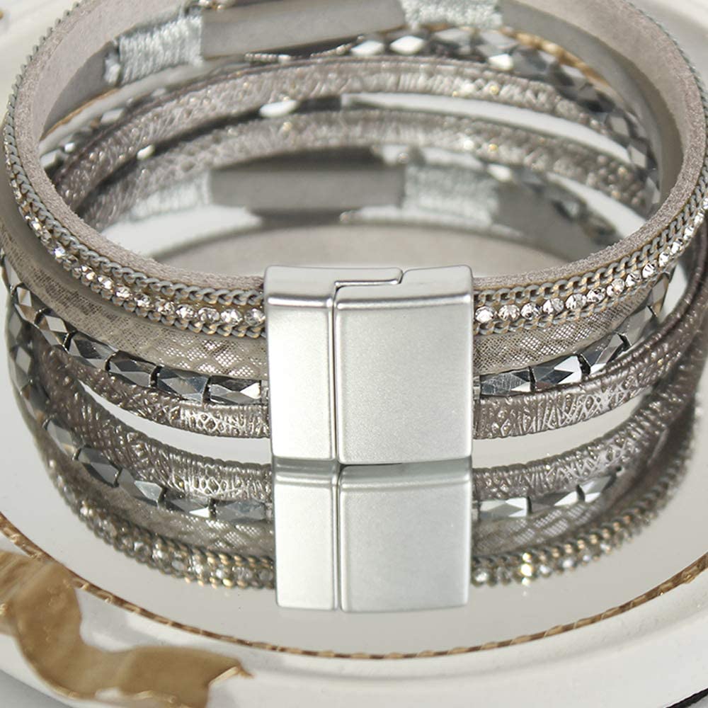 FANCY SHINY Leather Wrap Bracelet Boho Cuff Bracelets Crystal Bead Bracelet with Magnetic Clasp Jewelry Gifts for Women Teen Girls