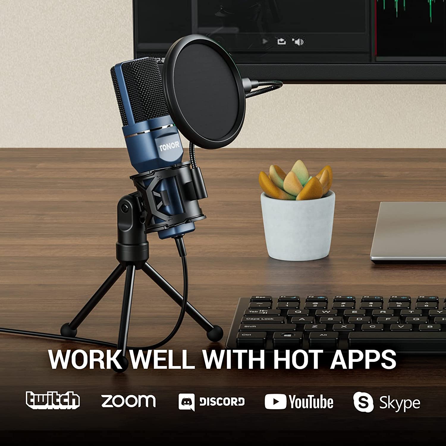 TONOR USB Microphone, Computer Cardioid Condenser PC Gaming Mic with Tripod Stand & Pop Filter for Streaming, Podcasting, Vocal Recording, Compatible with Laptop Desktop Windows Computer, TC-777