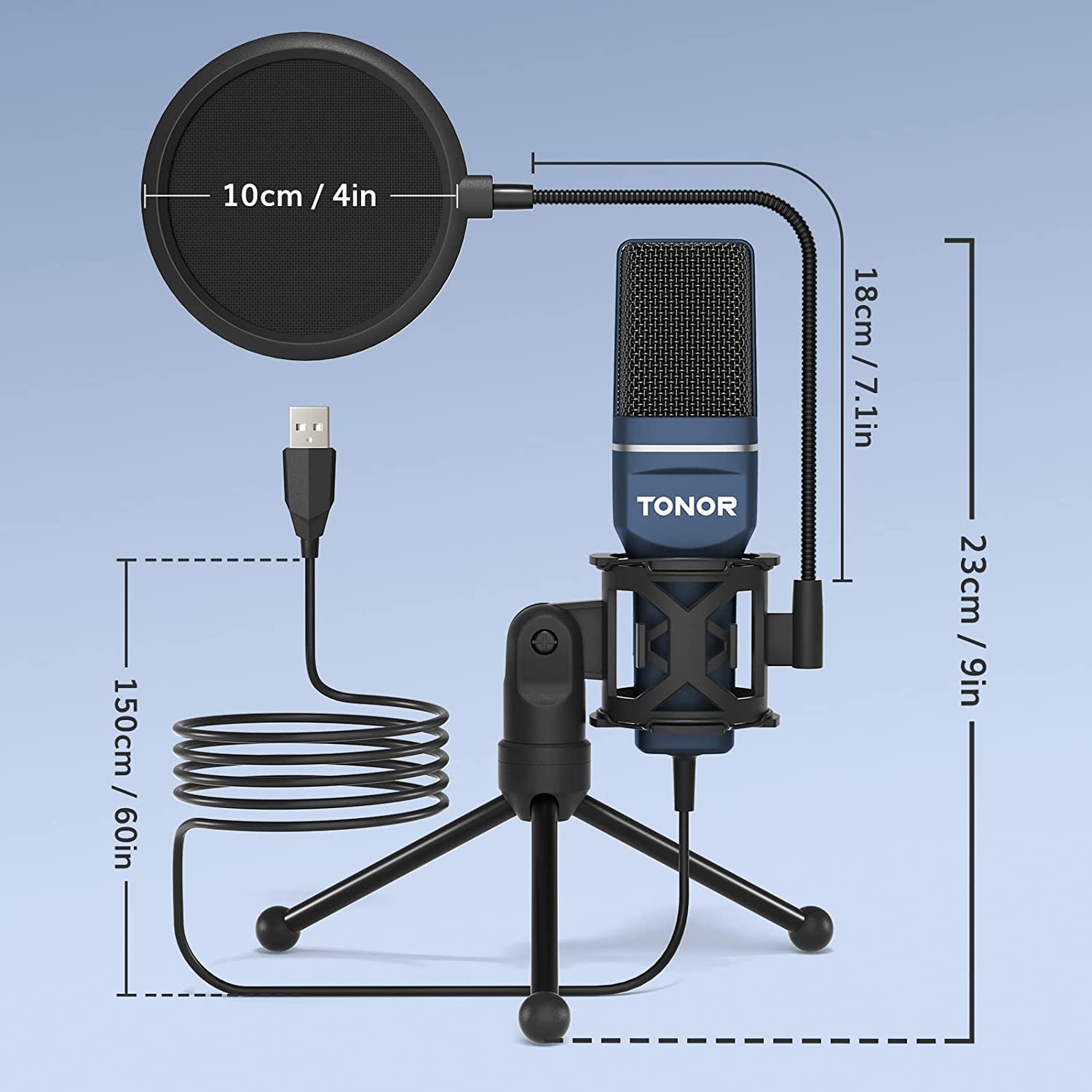 • What You Get: 1 x Microphone with Power Cord(1.5m), 1 x Foldable Mic Tripod, 1 x Mini Shock Mount, 1 x Pop Filter and 1 x Manual. (Note: It is not compatible with Xbox.)