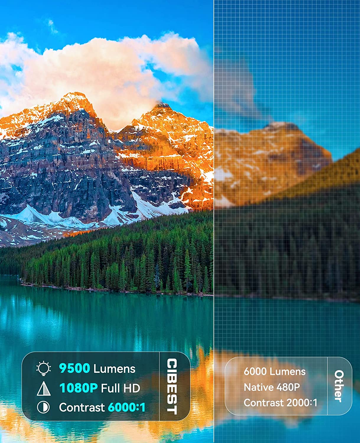 • 【 INCREDIBLE PICTURE QUALITY】Enjoy a superior movie experience with the 2023 Upgraded CiBest mini projector which offers 80% more brightness than other projectors in its price range. With 1080P Full HD and 6000:1 contrast ratio, it delivers an incredibly lifelike image for videos and movies. Plus, the diffuse reflection technology offers a softer projection image that protects your eyes.