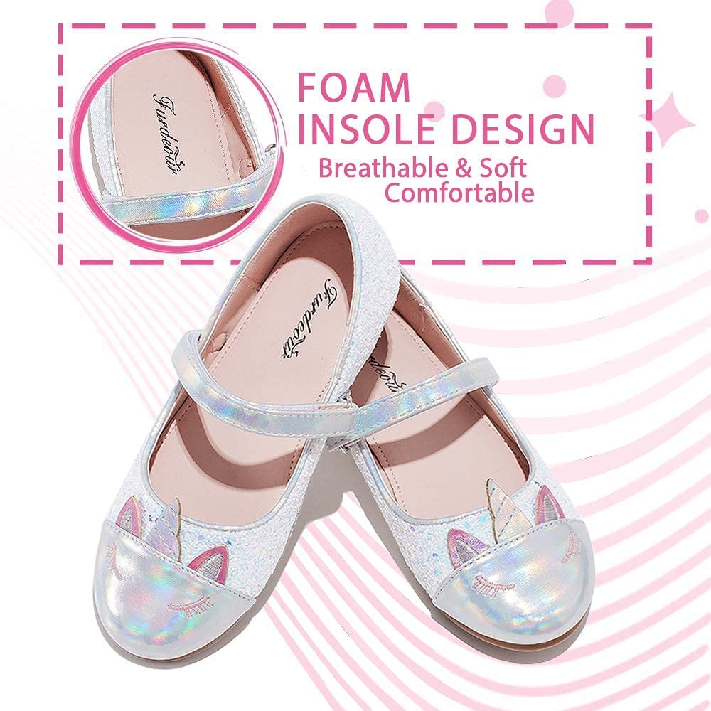 • COMFORTABLE: Anti-slip TPR sole made more steady and wear-resistant. Thickened memory foam footbed helps provide all-day comfortable for your little princess.Designed to be worn all-day-long with ease and comfort in every step