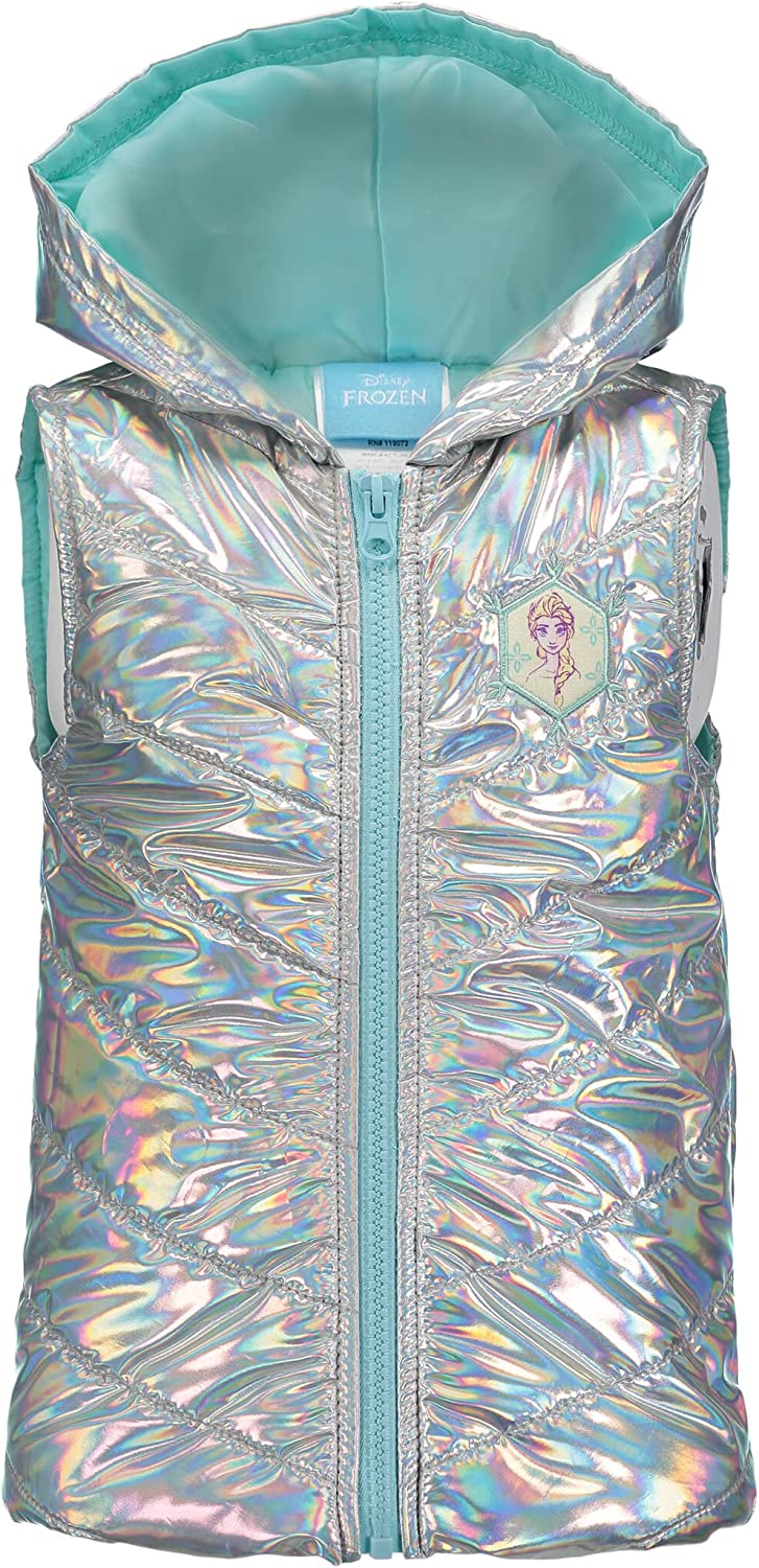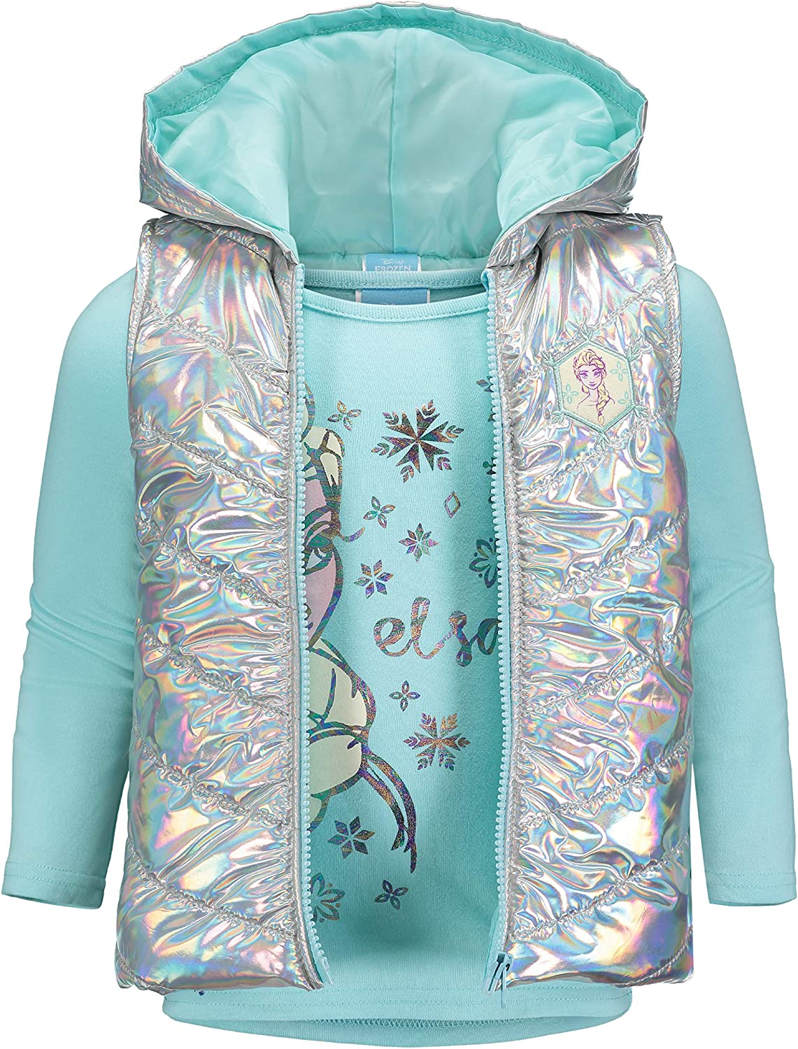 Disney Frozen Princess Anna Queen Elsa Girls Zip Up Vest Puffer T-Shirt and Leggings 3 Piece Set Toddler to Big Kid