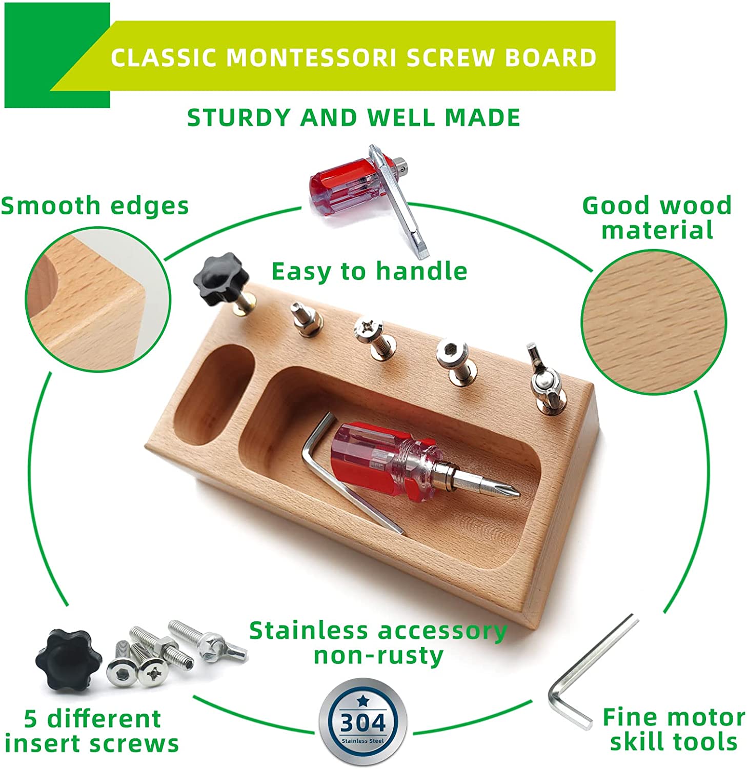 - The Montessori Materials Screw Board Great Gift for Toddlers and Older Children To Provide A Sensory Experience for A Wide Range of Developmental Levels.montessori screwdriver board set