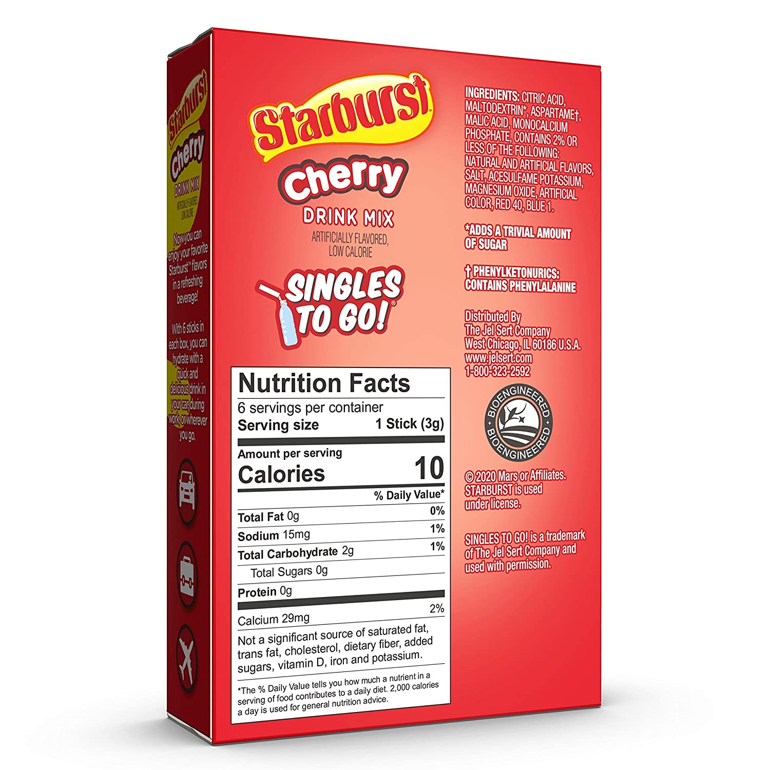 • SUGAR-FREE – Starburst Singles To Go drink packets are low-calorie water enhancers that are sugar-free so you can feel great about sharing them with the whole family.