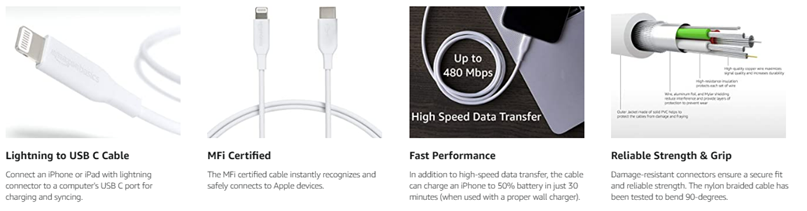 • IN THE BOX: Amazon Basics Lightning to USB-C Cable, worry-free Lifetime Warranty and dedicated Amazon customer service.