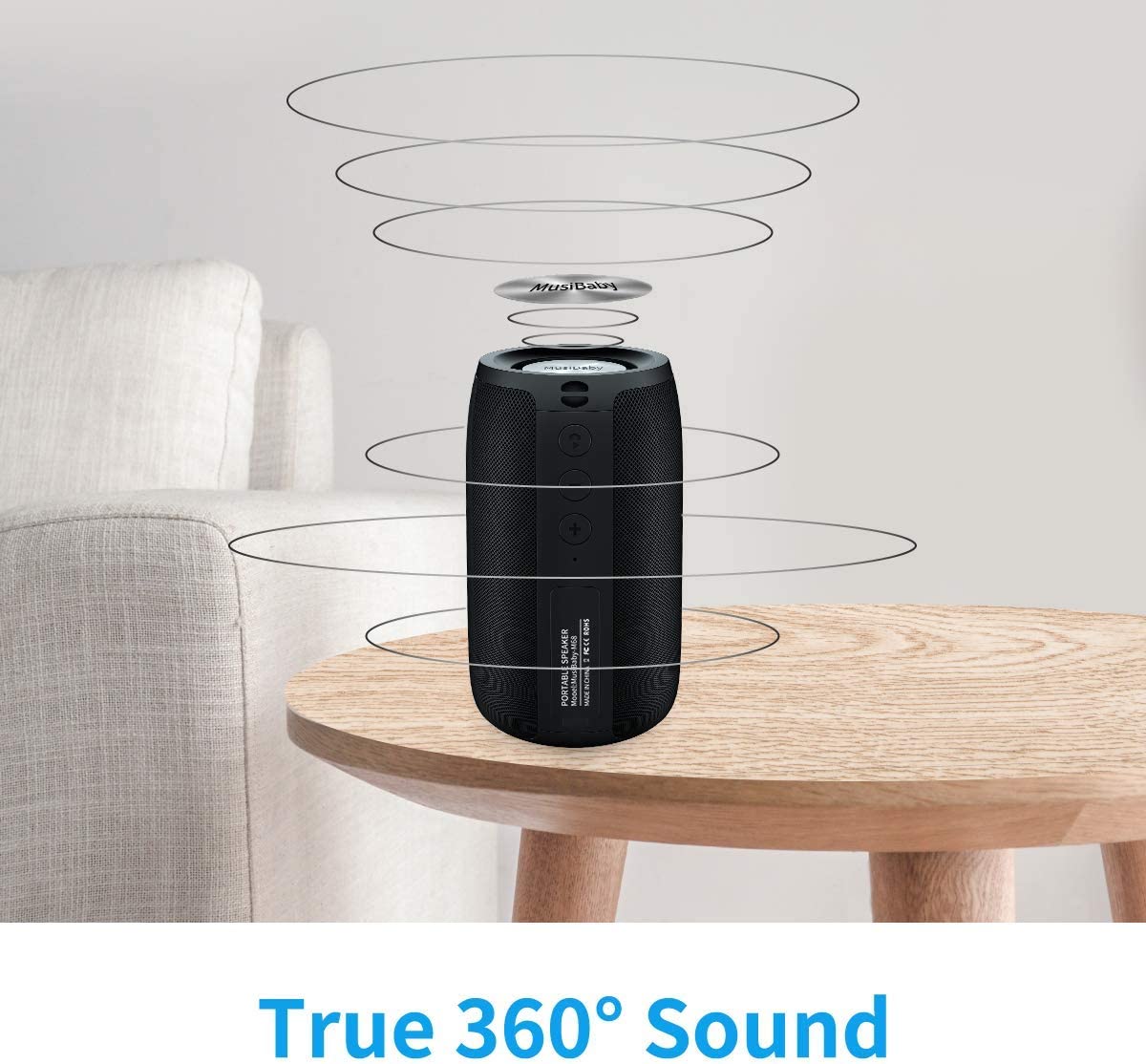 • ♩♪♫【True 360°Stereo Sound & Amazing Bass Sound】Stereo sound with full bass---the bluetooth speaker delivers immersive sound with rich bass, mids and highs, and dynamic sound. At the maximum volume, it’s in the same way as a live concert performance. You will like MusiBaby’s true 360°Stereo Sound bluetooth speakers. It must be a good choice to be christmas gifts for women or men.