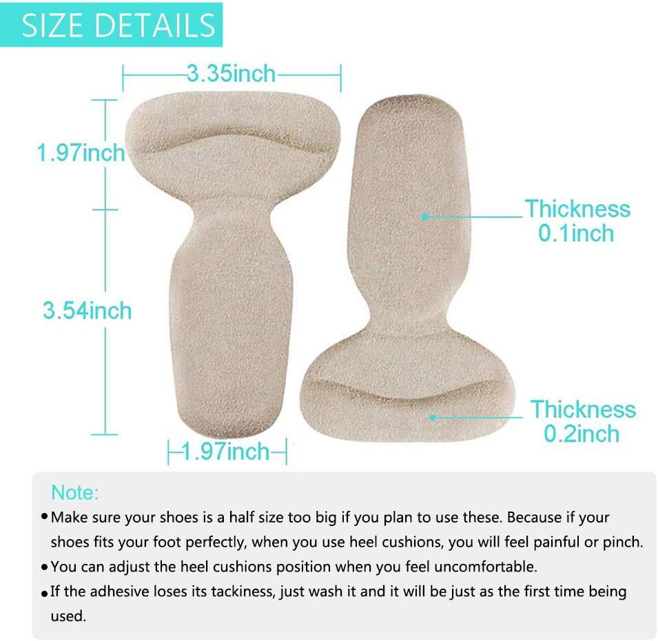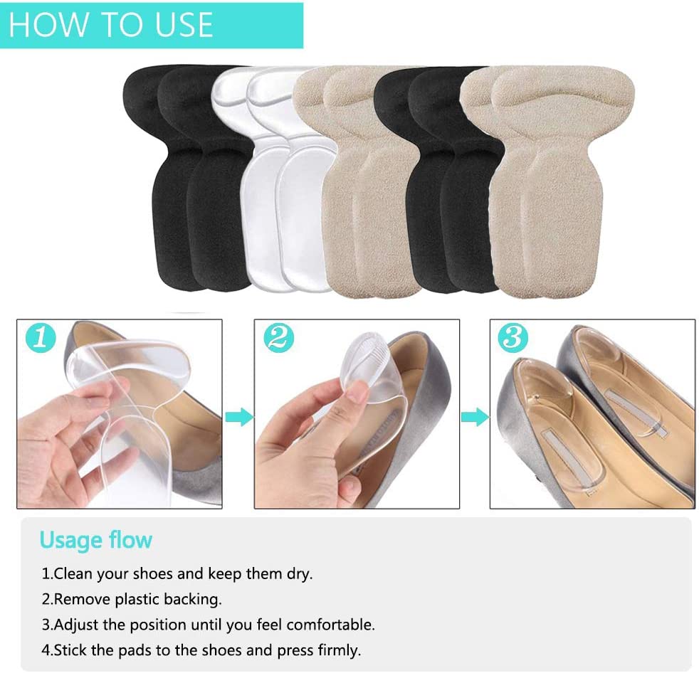 • LOOSE SHOES:We recommend that you use them in loose shoes to avoid pinching your feet.The heel grips are designed to fit the outline of the heel part of the shoe.Reduces about 1/4 to 1/2 ish of sizes. These heel cushion inserts make shoes a bit more tight. Gel material stop your feet from slipping in and out of your shoes.