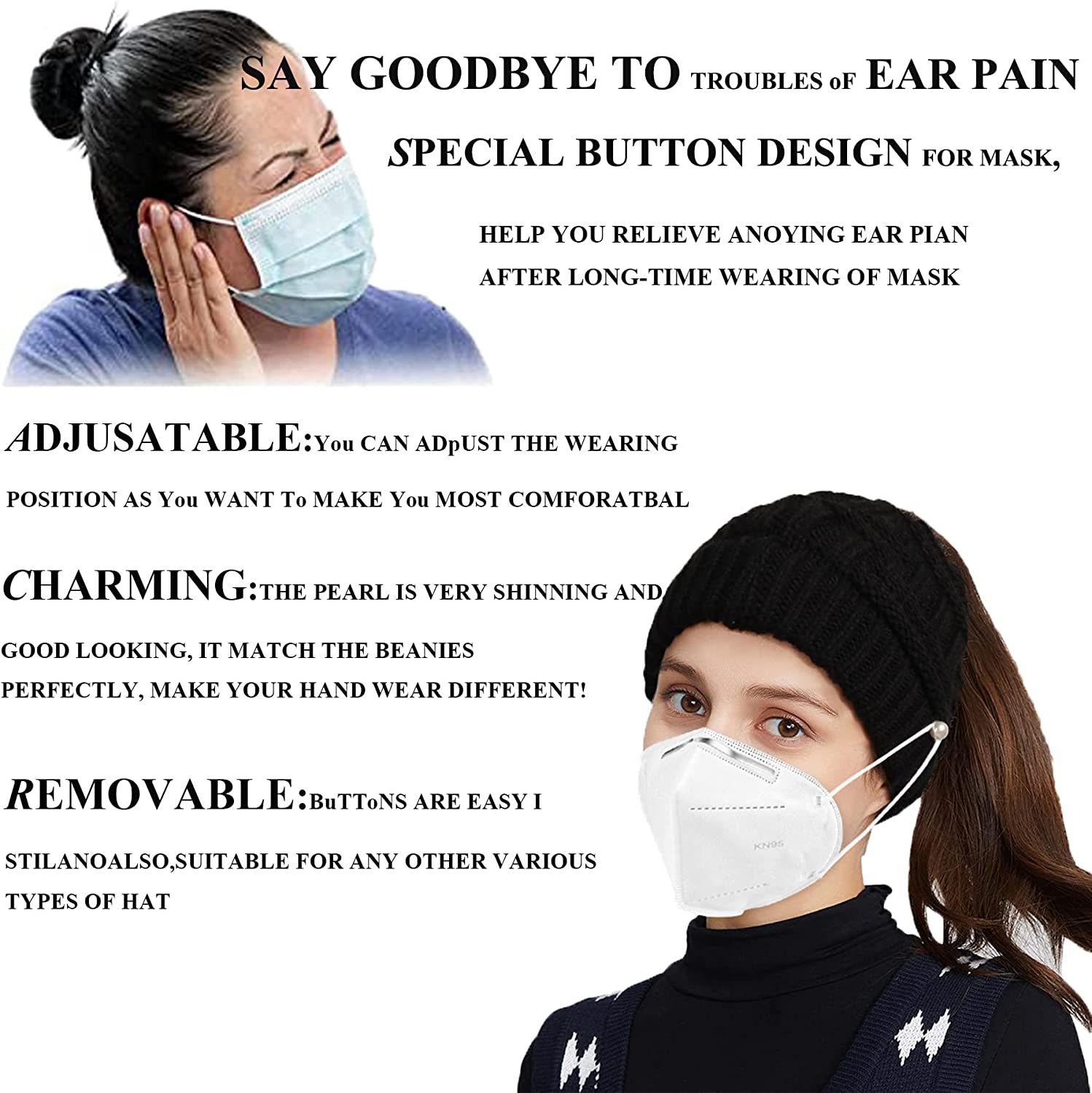 • Upgraded Pearl Buttons: We’ve listen to the feedback of our treasured customers and improved the buttons for mask. With our newly designed larger pearl button, you will get rid of the annoying ear pain when you wear a mask. It is larger than previous version, so it can fit all kinds of daily mask. These ponytail hat with buttons will allow you to put the mask straps around the buttons instead of your ears,a more comfortable way to wear face cover!