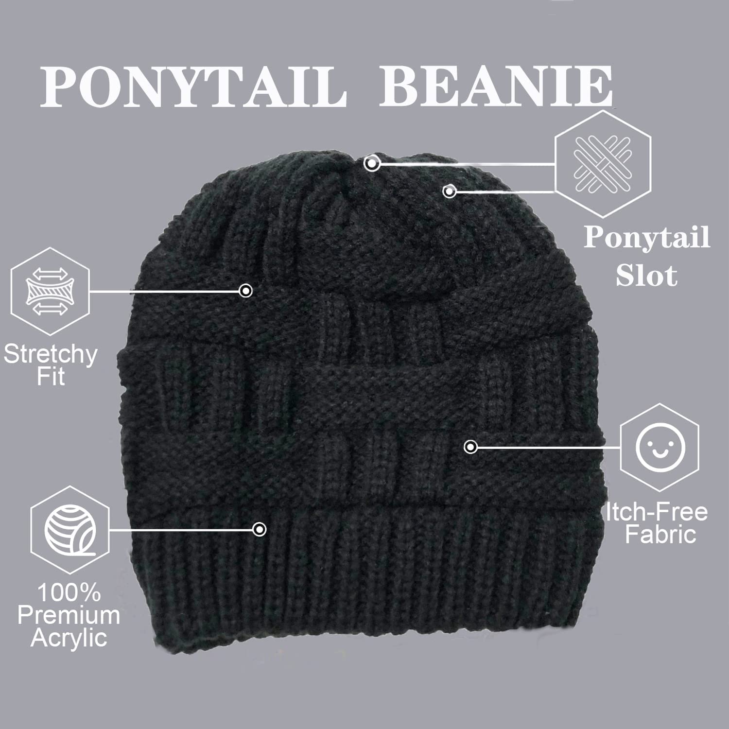 • One size fit all: This Ponytail beanie are 100% arlics . Lightweight, super soft and warm. Exceptional quality.No matter the head size or crazy hairdo,this hat with poytail hole hat will stretch to fit you.You can even cover your ears. It'll snuggle your head like receiving a big hug.