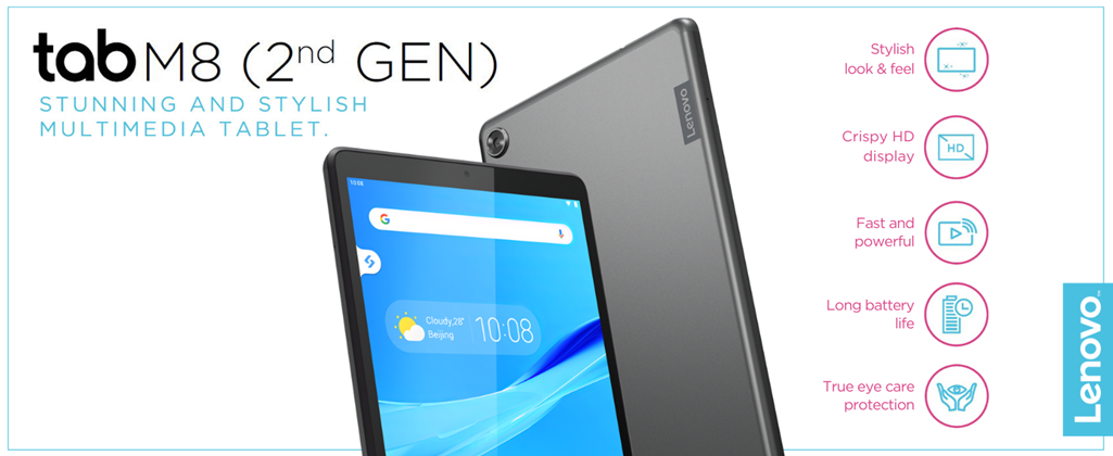 Running on the Android™ 9 Pie™ operating system, the Lenovo Tab M8 is quick and adaptive, letting you enjoy your favorite apps with ease. This Android tablet also includes special light and display technology for true eye care protection, lowering harmful blue light when appropriate to reduce strain on the eyes. Slim and lightweight, the Tab M8 is the tablet device that everyone wants to have.