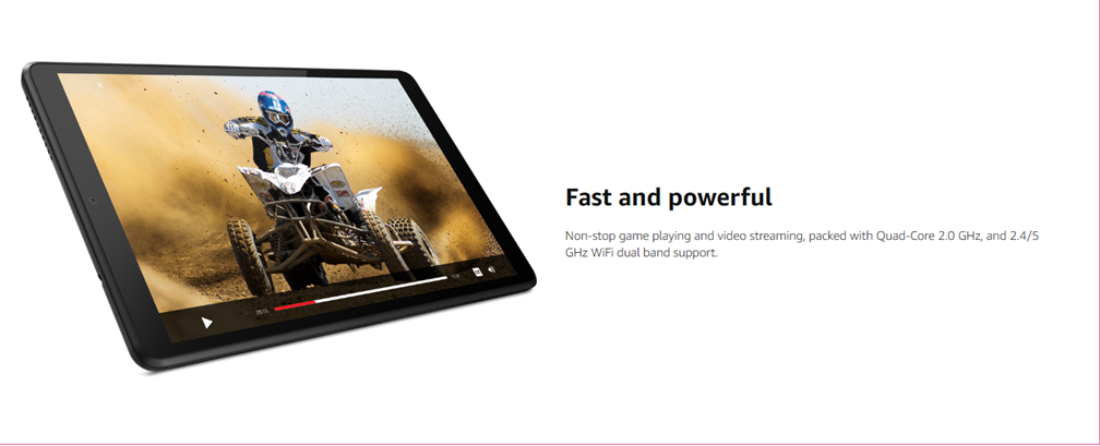Stunning and stylish, the Lenovo Tab M8 is the 2nd generation multimedia tablet that's tailored to make your entertainment experience richer. With a standout metal design, this small tablet is sleek, modern, and refined. The 8-inch HD display is crisp and bright, so you'll never miss a detail of your favorite streaming movie or online game. A fast and powerful quad-core processor gives you non-stop gaming and videos, while the long-life battery lets you watch or play all day without the need to recharge! Bluetooth® 5.0 and Wi-Fi 802.11 a/b/g/n/ac (2.4/5 GHz) are built in, giving you strong wireless connectivity.
