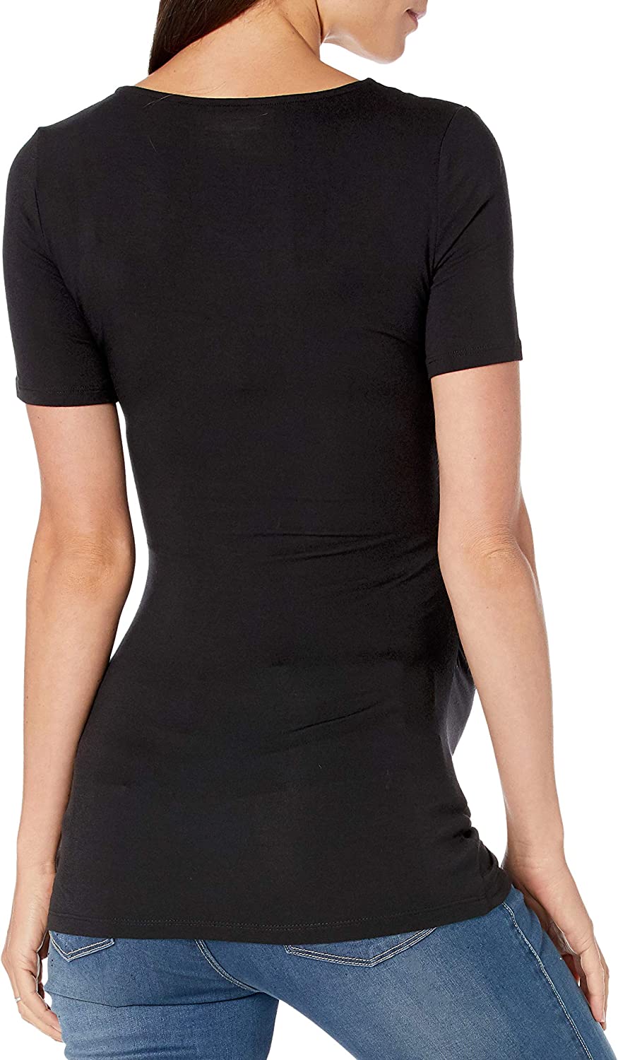 Amazon Essentials Women's Maternity Short-Sleeve Rouched V-Neck T-Shirt, Pack of 2
