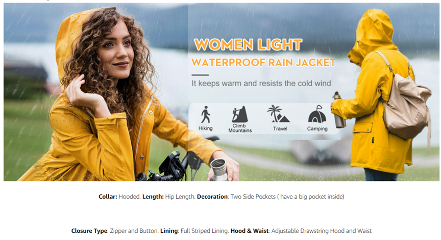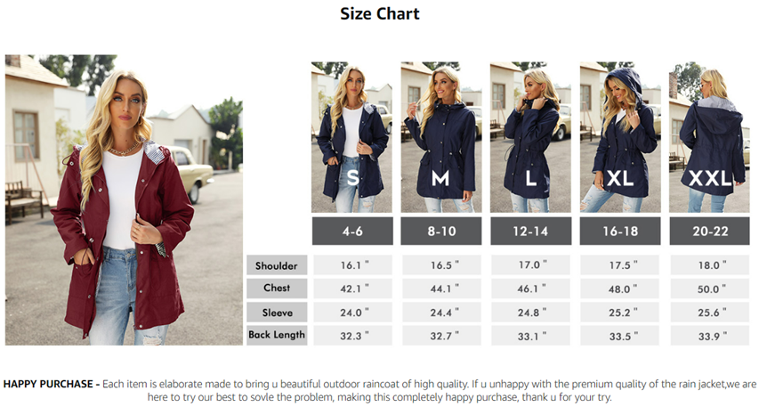 • 【Womens Raincoats Care】The raincoats are Dirt Proof, Wrinkle Resistance, Easy cleaning. Be attention, Hand-Wash, Dry Clean, Do Not Machine Wash. Machine wash easily damage the waterproof fabric.