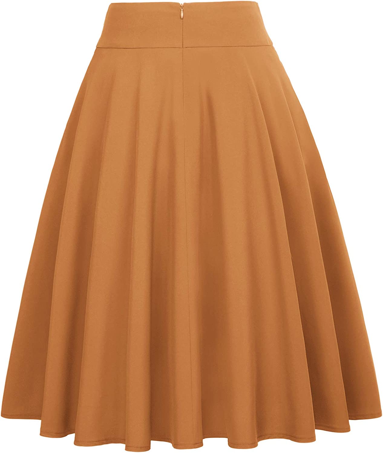 Women's under the knee length skirt. Twill fabric for comfortable fit,pleated skater midi skirt