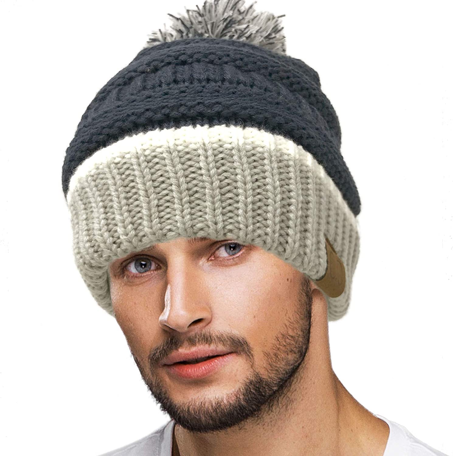 The Original Authentic C.C Exclusives Football Basketball College University High School Colors Pom Pom Stretchy Cable Knit Beanie Skull Hat Winter Warm Chunky Thick Ribbed Knit Beanie Skully Pull Back Slouchy Ski Hat Cap