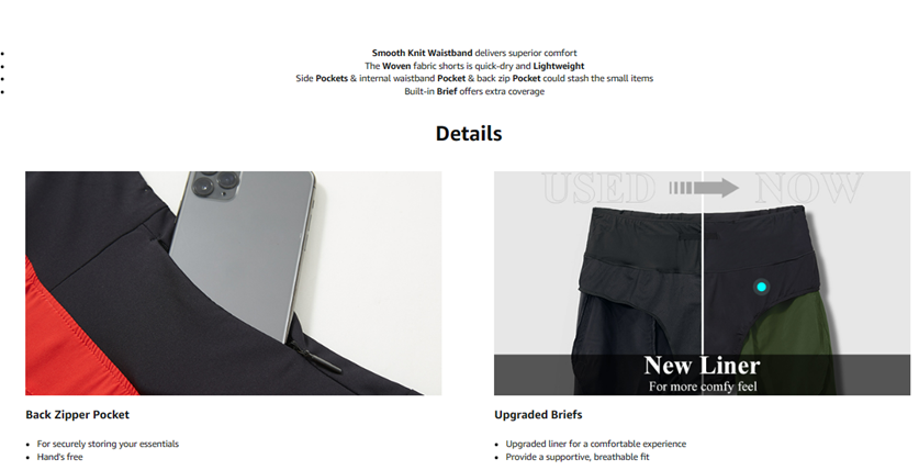 Built-in Briefs: Soft briefs provide a supportive, breathable fit when exercising.