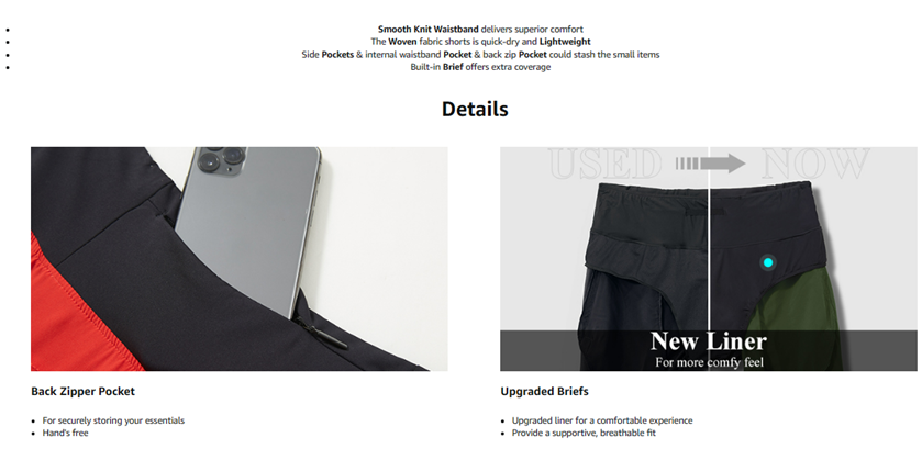 Built-in Briefs: Soft briefs provide a supportive, breathable fit when exercising.