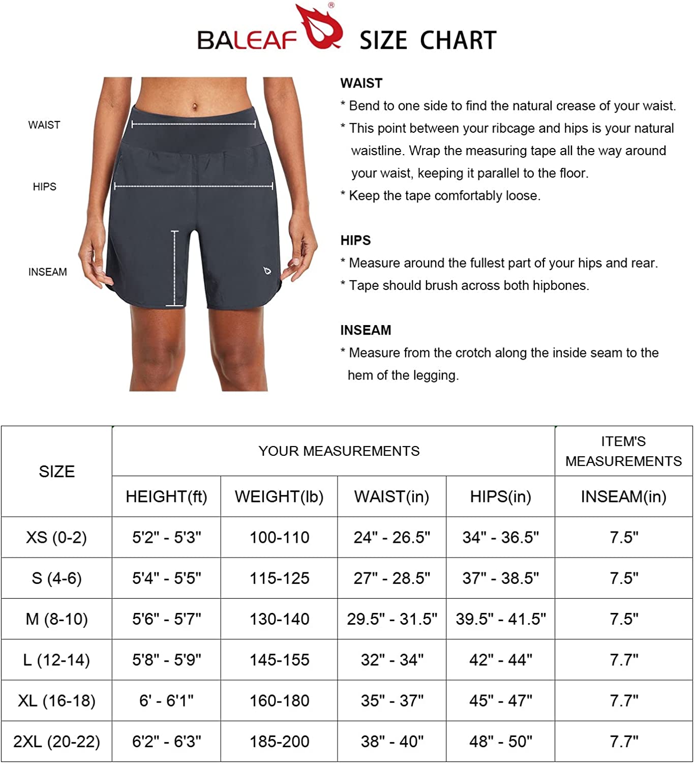 BALEAF Womens' 7" Long Running Athletic Shorts with Liner Workout Zipper Pocket