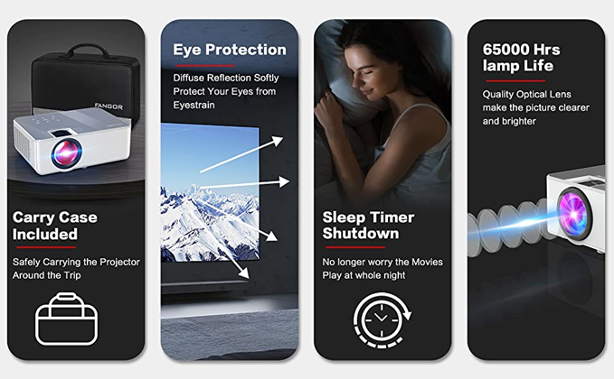• ❤【NATIVE 1080P FULL HD RESOLUTIONS】 With native resolution of 1920*1080 and contrast ratio of 10000:1, the Fangor-506 1080p Projector provides sharp and detailed HD images. Combining an innovative high-refraction 6 layers glassed lens, ensuring the best video experience.