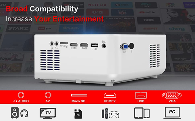 • You can use a TV Stick or Roku Stick to connect the projector to watch the connect from Netflix, Hulu and similar services