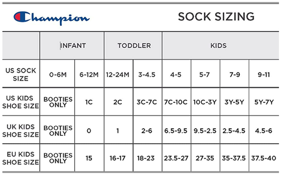 • IMPORTANT SIZE INFORMATION: SIZE LISTED IN DROP DOWN IS SOCK SIZE. Correct Sock to Shoe size correlation is: 4-5 Sock = 7C-10C Shoe, 5-7 Sock = 10C-3Y Shoe, 7-9 Sock = 3Y-5Y Shoe, 9-11 Sock = 5Y-7Y Shoe.
