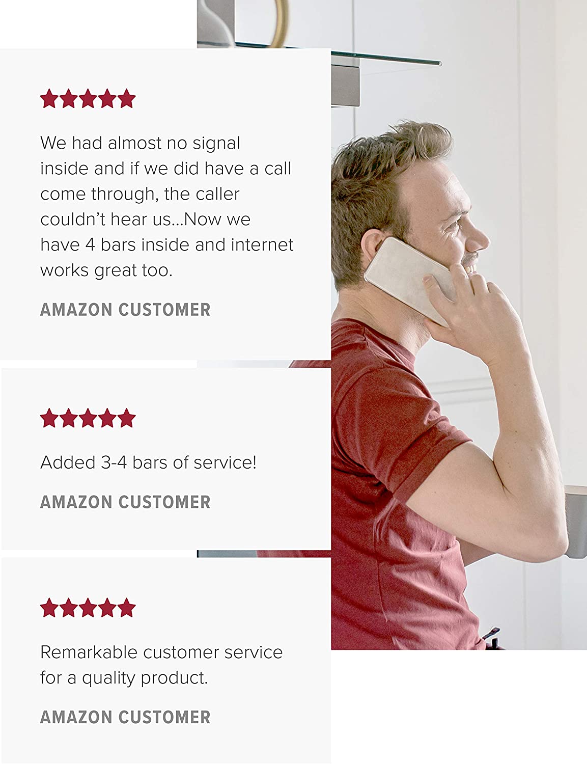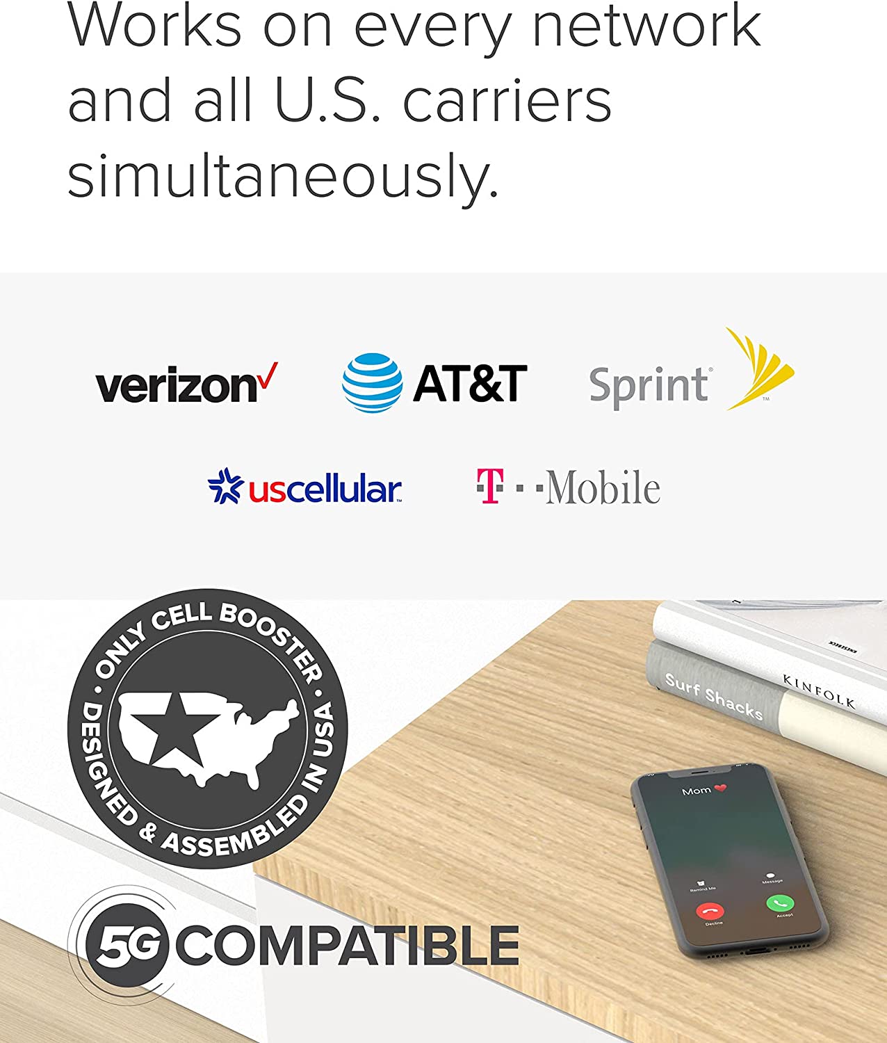 • Every device and network – Our 4G, 5G, and LTE signal boosters work for all cellular devices on all U.S. carriers simultaneously (including Verizon, AT&T, T-Mobile, and U.S. Cellular). So everyone is happy.