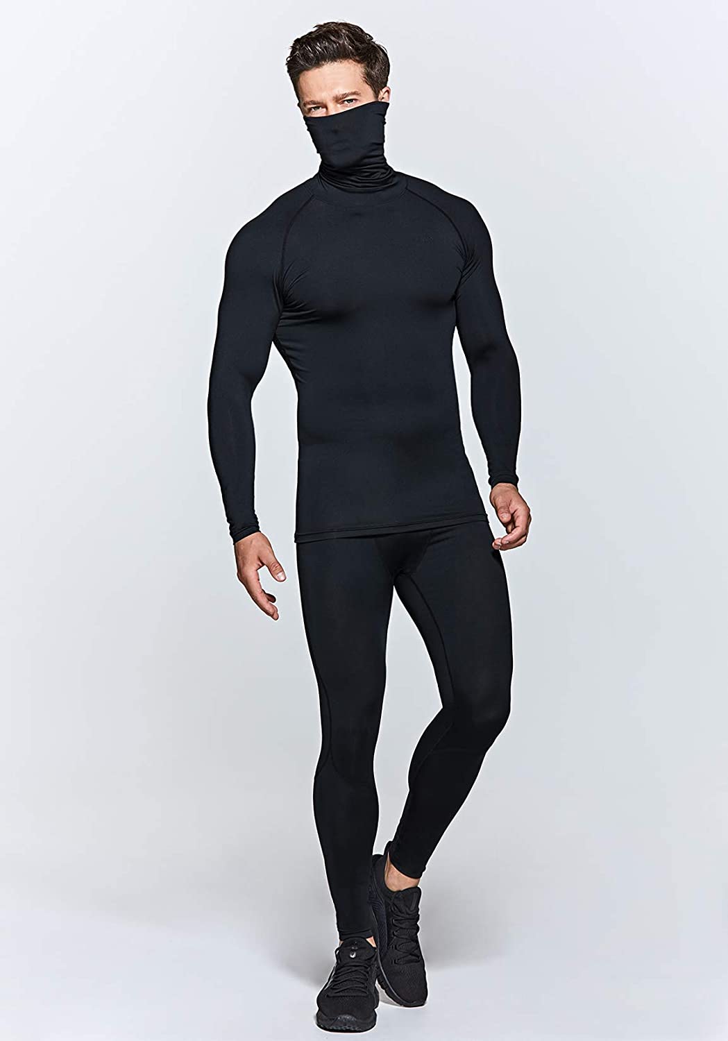 TSLA 1 or 3 Pack Men's UPF 50+ Mock Long Sleeve Compression Shirts, Athletic Workout Shirt, Water Sports Rash Guard