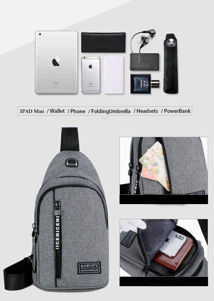 【Small size, large capacity 】 One strap backpack size only 11.8*6.7*2.3 inch, 220g/0.48lb, Large main pocket can fit up to 7.9 inch Tablets. Small zippered pocket for phones,power bank,wallet or outdoor/travel sundries. [ NOTE: The size is 17*30*6cm ] 【Suitable women & men 】 Shoulder strap for this crossbody sling bag is adjustable to meet different requirements for both men and women. Store just what you needs to carry without stuffing your pants pockets. Keep your pockets (and hands) free, everything you can imagine a man carrying every day goes into this bag. 【Versatile】: Simple sling purse is fit for coffee mornings or outdoor walking. Multipurpose perfectly works as men womens wallet purse, shoulder bag, chest pack, travel bag, outdoor sports bag (hiking, camping, climbing, cycling, walking, etc) in casual daily life. Also it’s a great gift for everyone. 【Water Resistant】Made with high density oxford material. Durable and water resistant. NOT 100% waterproof, so please do not use they in heavy rain. 【Earphone hole】with earphone hole design on the top of this sling bag, no need to keep your smartphone on hand or pocket when listening music