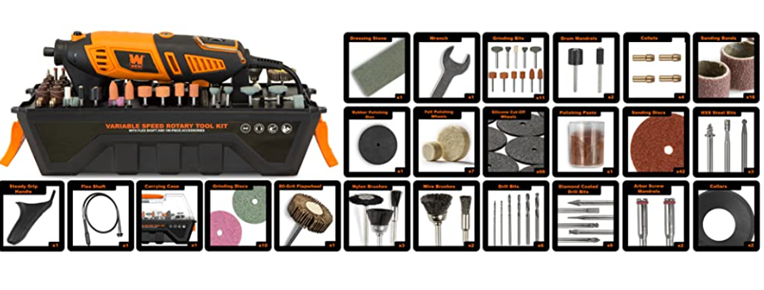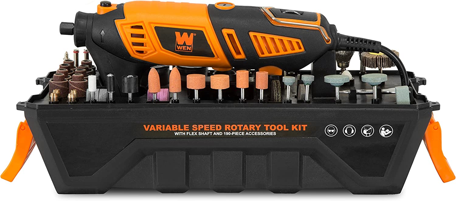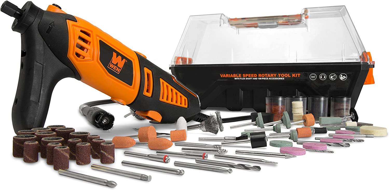 WEN 23190 1.3-Amp Variable Speed Steady-Grip Rotary Tool with 190-Piece Accessory Kit, Flex Shaft, and Carrying Case