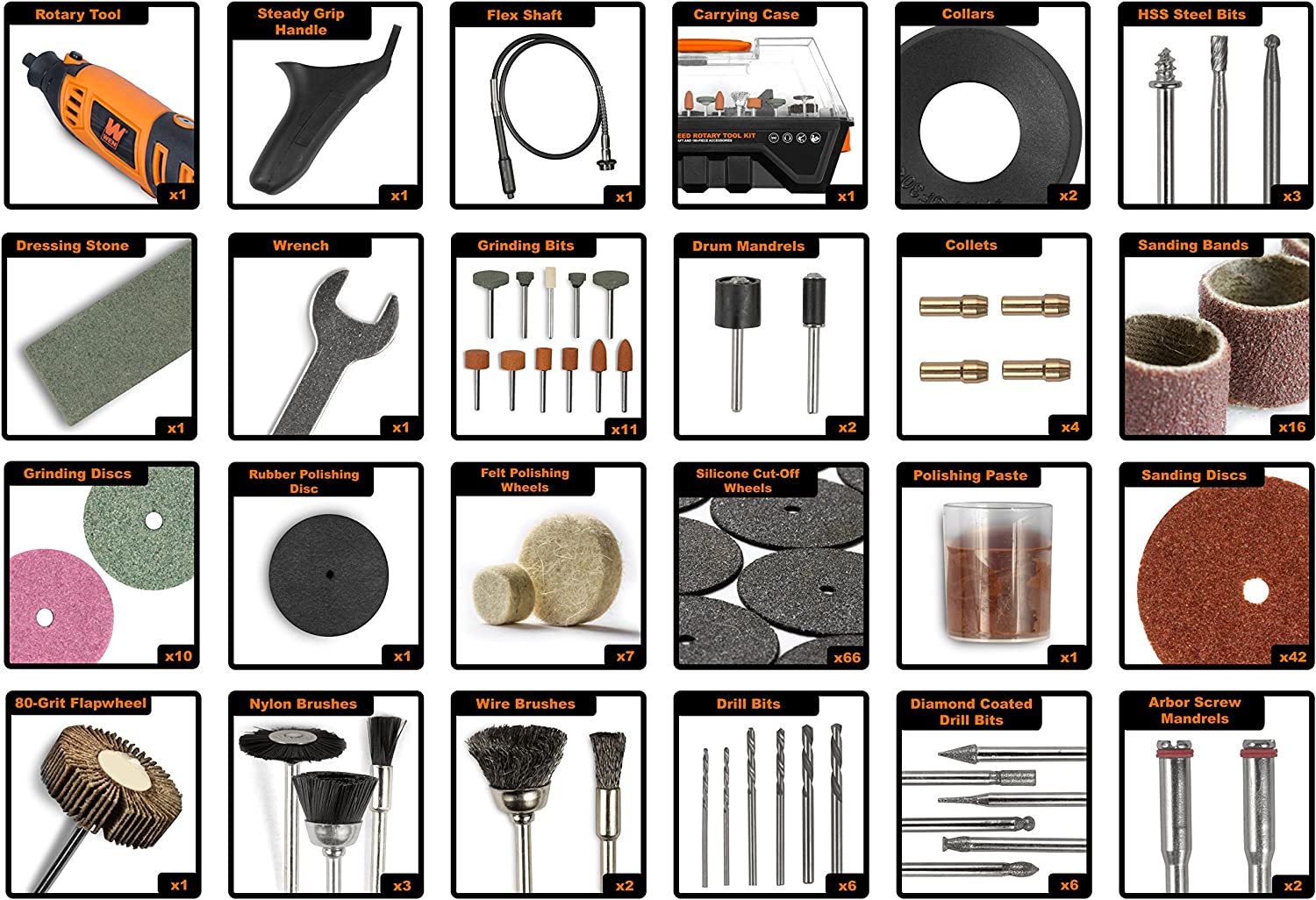 • Includes a carrying case to easily store and organize both your rotary tool and your 190 accessories