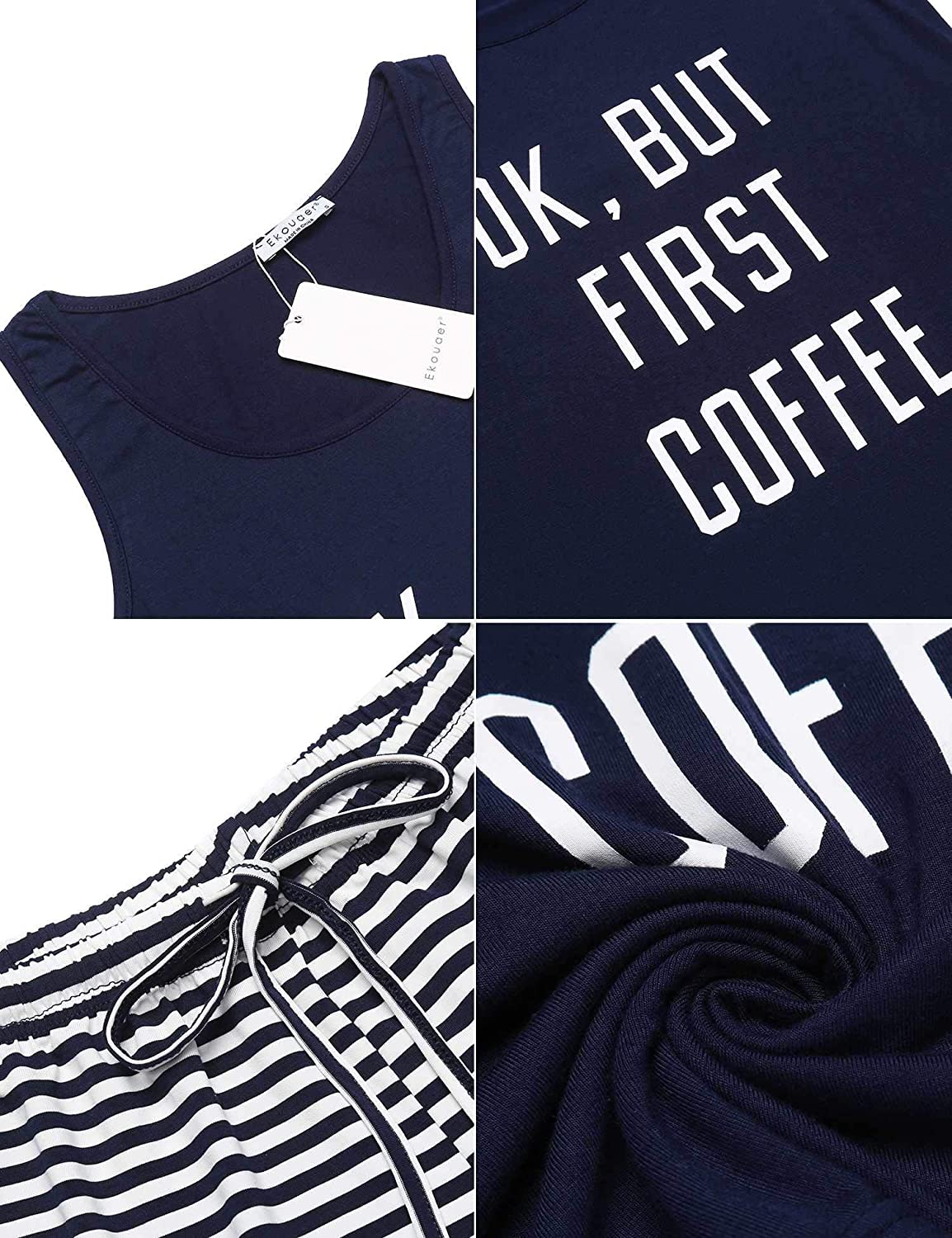 • FEATURES: Pajamas for women featuring sleeveless tank top and classic striped shorts, scoop neck, cute printed and lace trim hem.