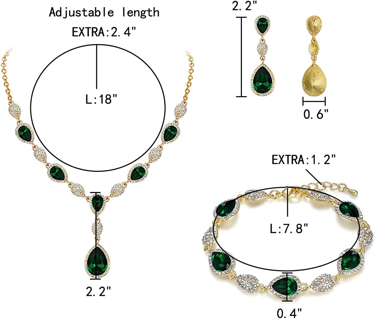 • ♥Jewellery Sets Size♥ Crystal Color: Green, Necklace Length: 18in-20.4in, Pendant Size: 2in by 6.9in; Bracelet Size:(7.8-9) inch L x 0.4 inch W; Dangle Earrings Size: 2.2 inch L x 0.6 inch W; Total Weight: 54g. Lightweight and Comfortable to Wear