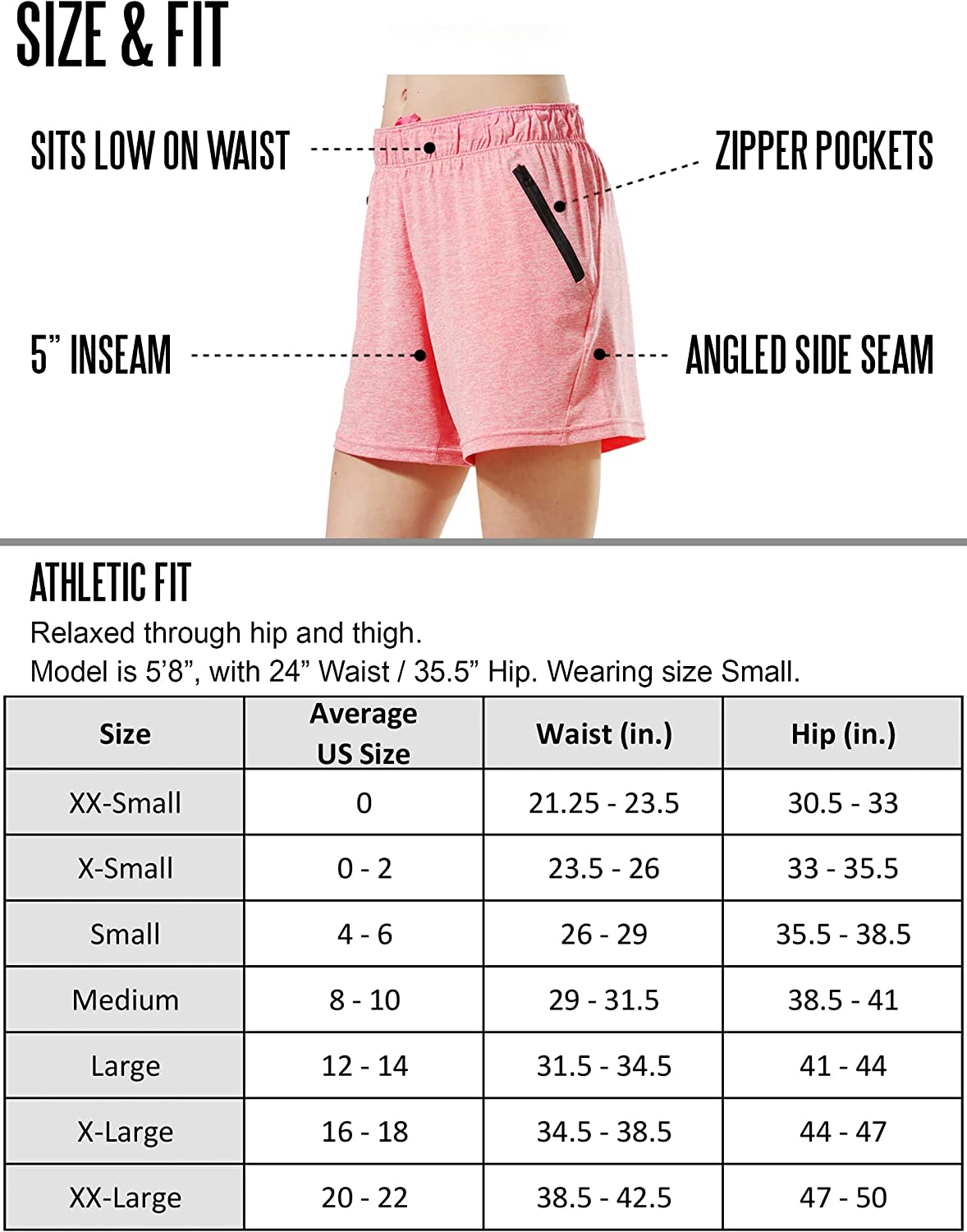 5 Pack: Womens Workout Gym Shorts Casual Lounge Set, Ladies Active Athletic Apparel with Zipper Pockets