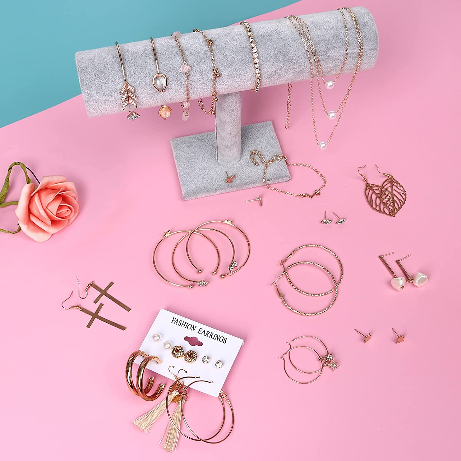 AROIC 38 PCS Gold Jewelry Set with 4 PCS Necklace,10 PCS Bracelet,24 PCS Layered Ball Dangle Hoop Stud Earrings for Women Girls Jewelry Fashion and Valentine Birthday Party Gift