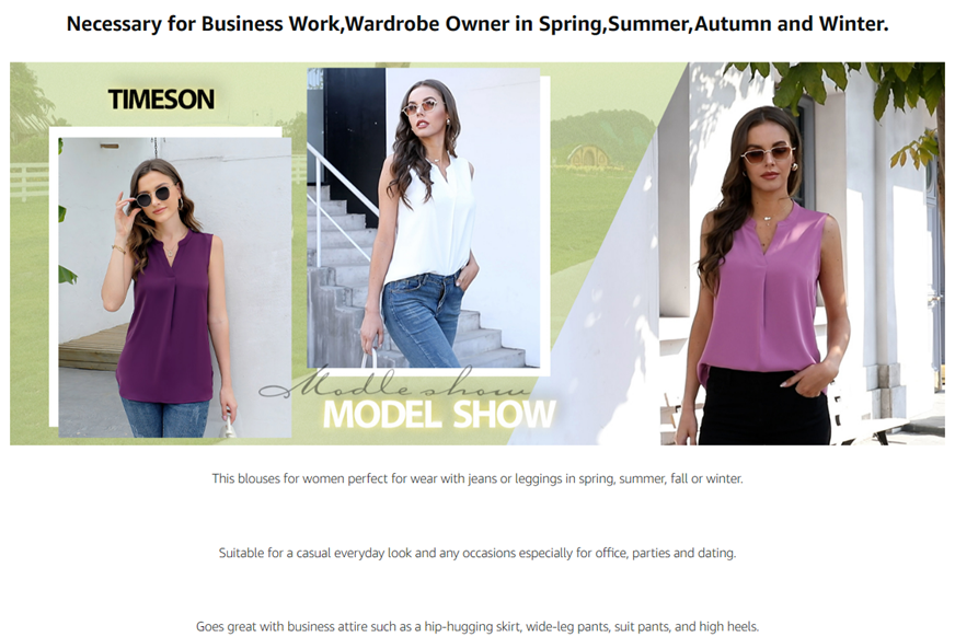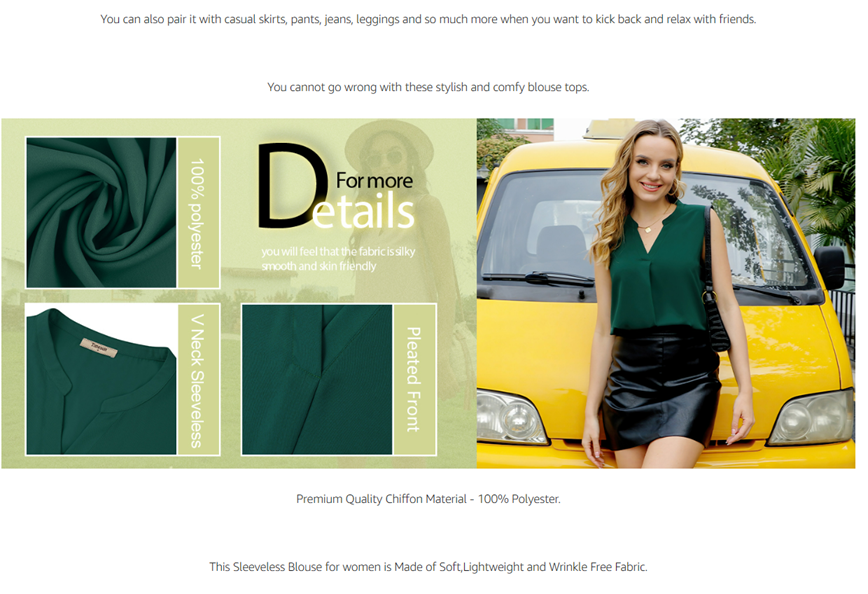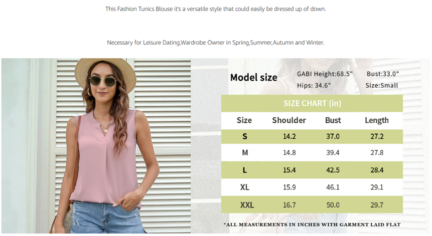 The fabric is made of 100% polyester.When wearing these sleeveless blouse for women, you will feel that the fabric is silky smooth and skin friendly.