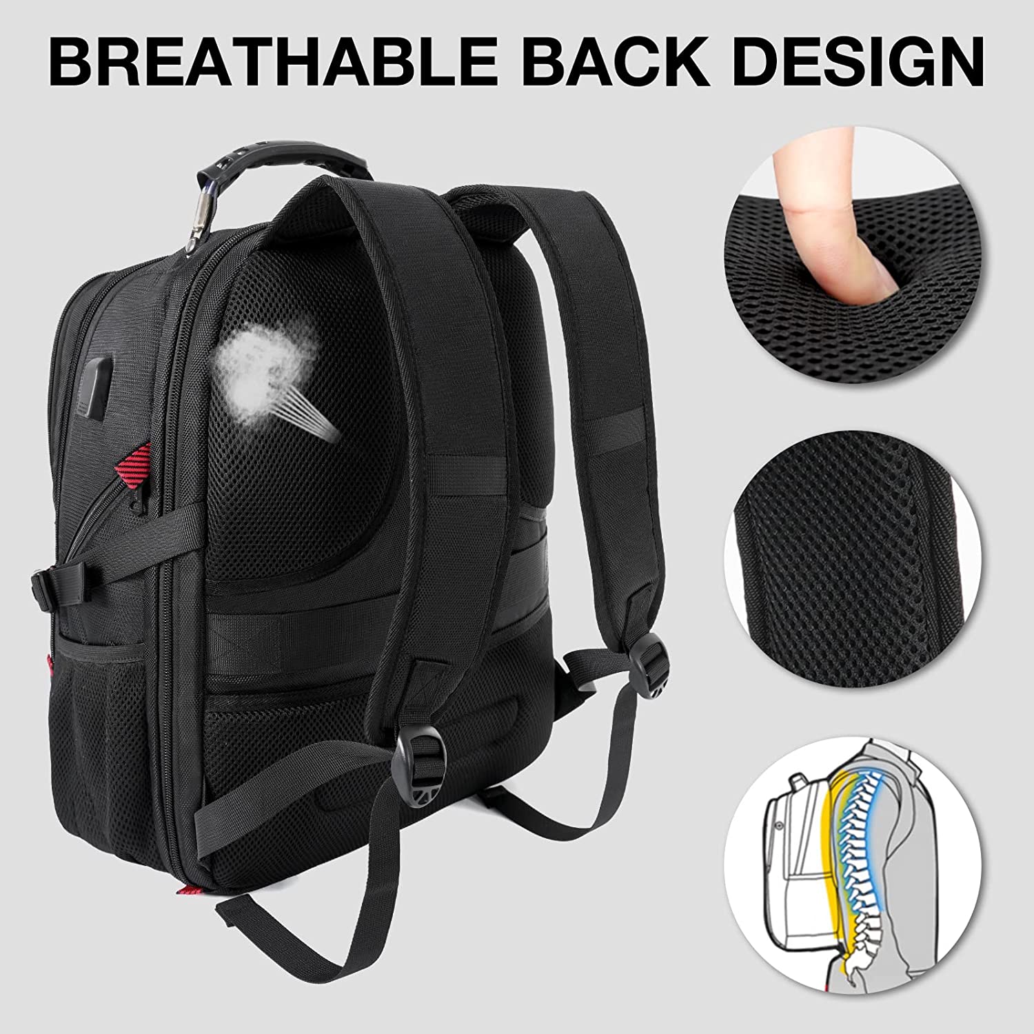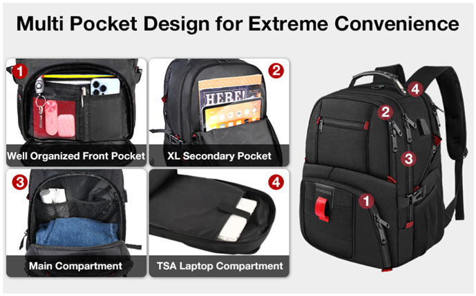 TSA Approve & Multipurpose: At checkpoints, the large travel backpack can be freely unfolded 90-180 degrees, allowing you to quickly pass through airport security and keep things tidy, exclusively designed for airplane travel. A luggage strap allows the traveling backpack to fit on the suitcase, great for international plane travel and day trips