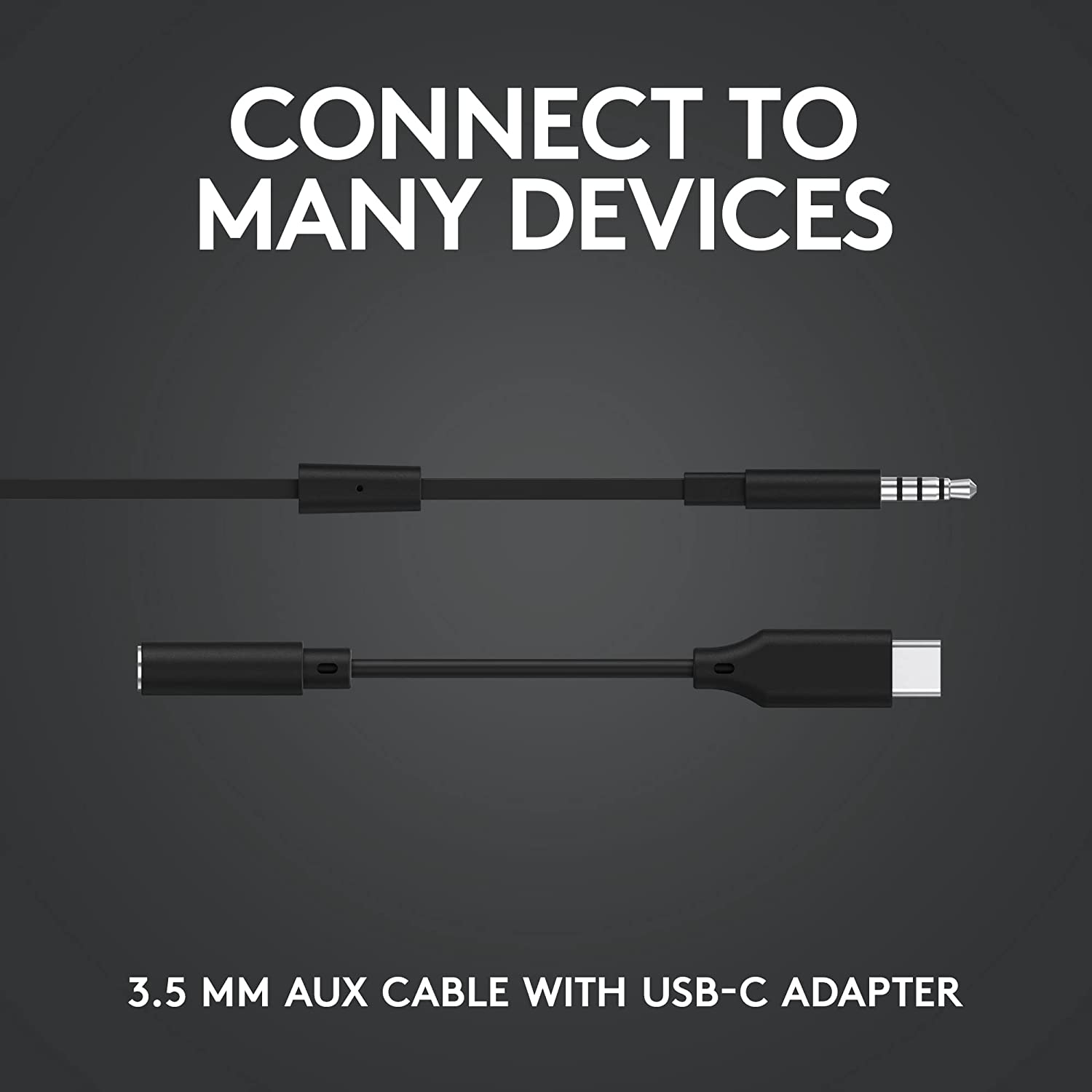 Logitech G333 Gaming Earphones with Dual Audio Drivers, in-line mic and Volume Control, Compatible with PC/PS/Xbox/Nintendo/Mobile with 3.5mm Aux or USB-C Port - Black