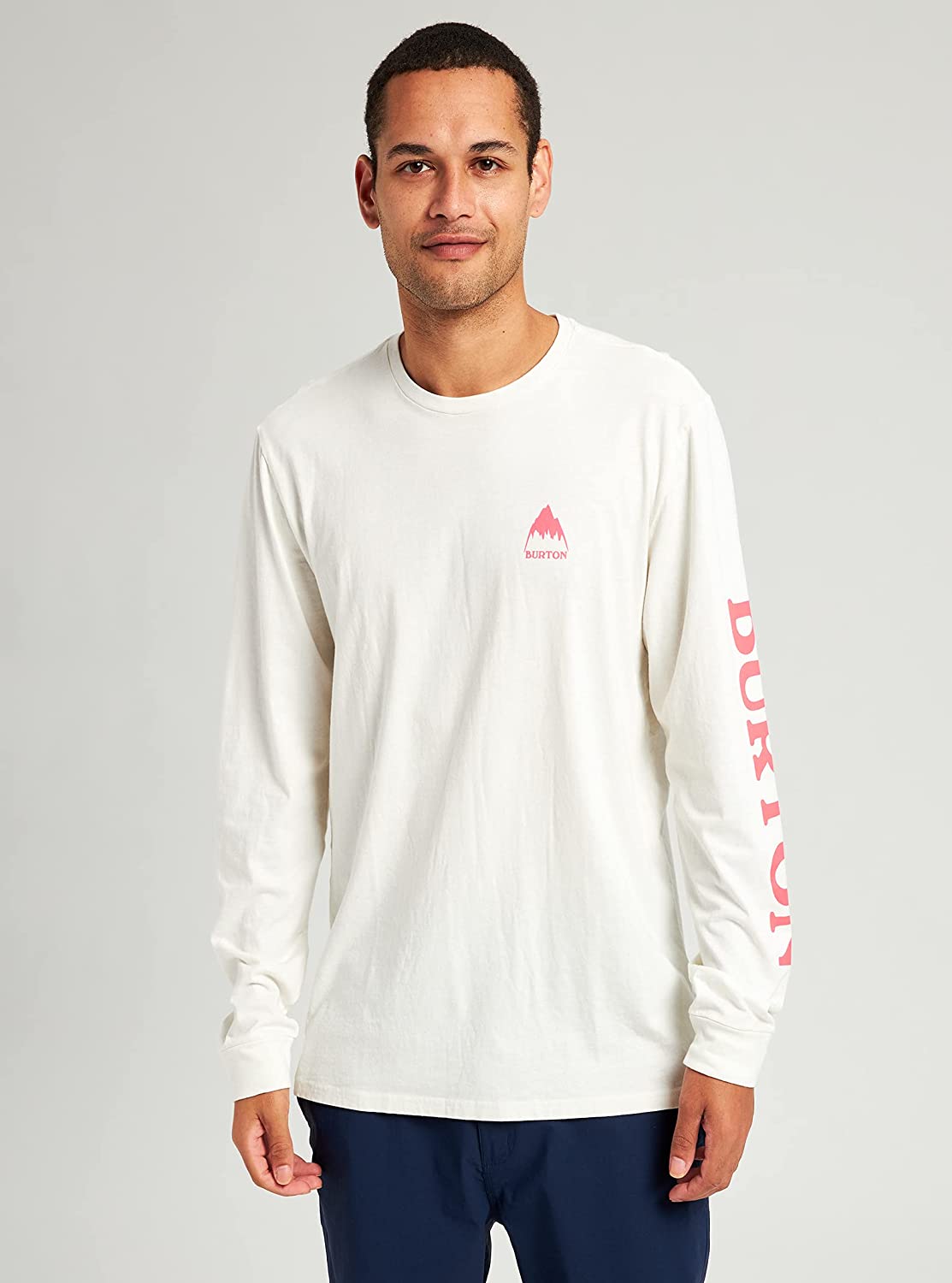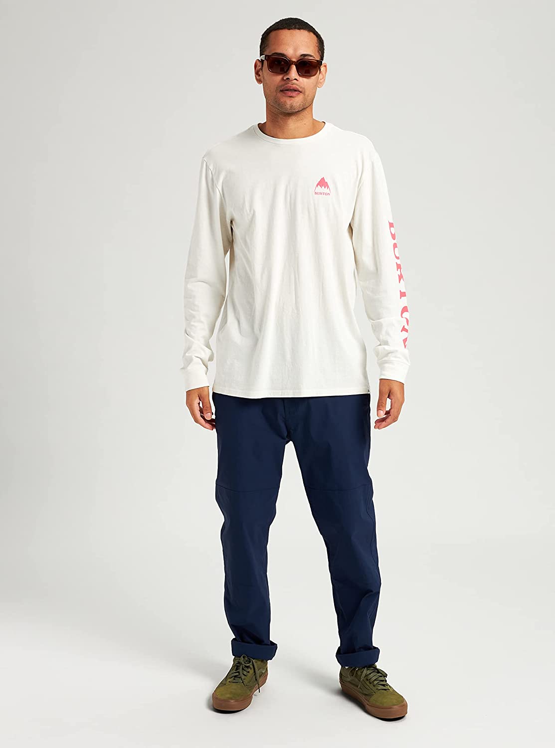 The men's Burton Elite Long Sleeve T-Shirt provides exceptional comfort for curious souls who take the road less traveled and enjoy every minute of it. This T-shirt is made with familiar-feeling lightweight 100% organic cotton. Mountain culture-inspired Burton graphics are screen printed along the sleeve and on the chest.