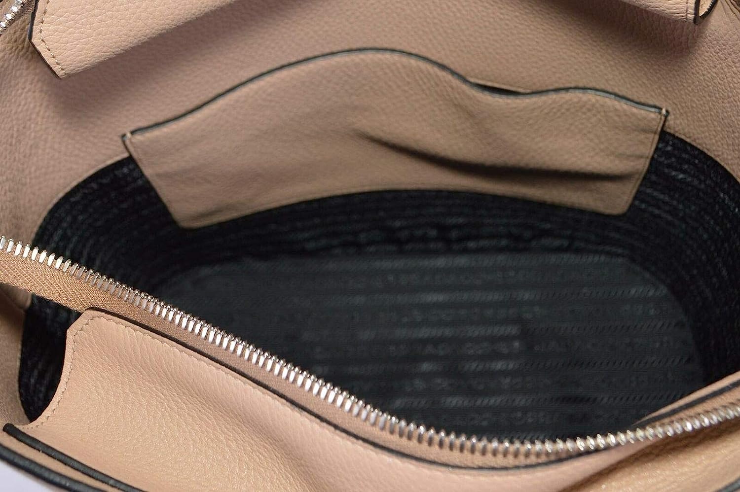 Prada Beige Logo Web Stripe Strap Pebbled Leather Crossbody Shopping Tote Bag 1BE023