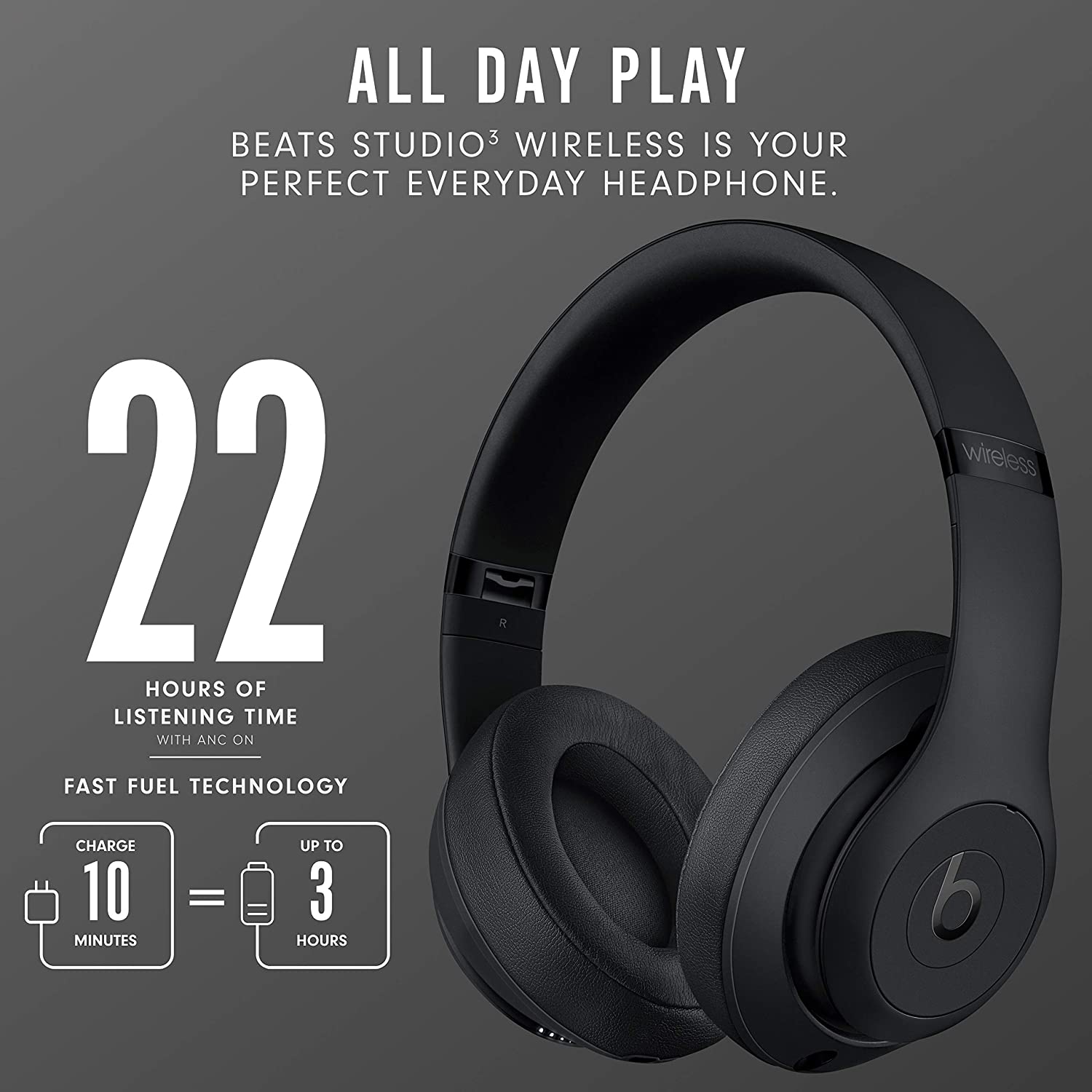 Beats Studio3 Wireless Noise Cancelling Over-Ear Headphones - Apple W1 Headphone Chip, Class 1 Bluetooth, 22 Hours of Listening Time, Built-in Microphone - Matte Black (Latest Model)