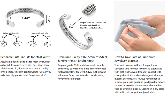 Sunflower Jewellery is the original jewelry brand registered in USPTO in 2017. Sunflower Jewellery are simple, cute and elegant mantra cuff bracelet made of premium material, well made quality and affordable gift idea. Promoting a lifestyle of Optimism, positivism, Inspiring. Wear your Sunflower Jewellery everyday as your daily reminder, affirmation, and inspiration. We have received thousands of compliments from our customers to appreciate our jewelry inspired them a lot, This is power we continue selling great products here, Thank you so much to order from Sunflower Jewellery and let us explore together...