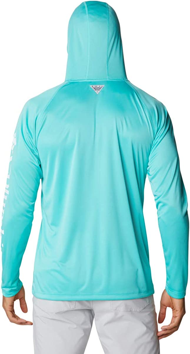 An anglers perfect hoodie: the Columbia PFG Terminal Tackle Hoodie is the ultimate day-out-on-the-boat staple for its quick-drying and sun protection fabric. This hoodie remains lightweight, yet durable, no matter the weather or catch. High quality materials and expert craftsmanship are the backbone of Columbia Men's apparel. The technology featured in this hoodie is necessary for any day out on the water. The exterior layer is made up of a combination of Columbia’s signature protection fabrics: UPF 50 works to block and shield your little one from harmful UVA and UVB sun rays known to cause skin damage; the advanced wicking fabric works to pull moisture away from the skin so sweat can evaporate and you can remain cool. The Columbia Terminal Tackle Hoodie also features subtle style—our signature logo runs along the sleeve and the chest. Columbia offers this fishing hoodie in multiple staple colors and sizes. To ensure the size you choose is right, utilize our sizing chart and the following measurement instructions: For the sleeves, start at the center back of your neck and measure across the shoulder and down to the sleeve. If you come up with a partial number, round up to the next even number. For the chest, measure at the fullest part of the chest, under the armpits and over the shoulder blades, keeping the tape measure firm and level.