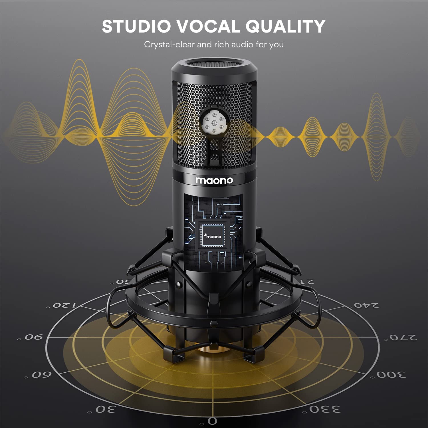 MAONO USB Microphone with One-Touch Mute and Gain Knob, Professional Condenser Computer PC Mic for Podcasting, Recording, Gaming, Live Streaming, Zoom Meeting, Studio, YouTube, Skype, AU-PM421