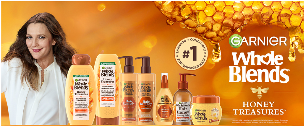 For every blend, there's whole Blends, hair care blended with purpose, because when the right ingRedients come together something beautiful happens, we believe in the power of blends because blended makes us better. Whole Blends Repairing leave-in Miracle nectar h1y treasures treatment provides 10 benefits in 1 treatment and is blended with purpose with h1y known to replenish and royal jelly and propolis known to nourish and repair. 10 benefits including 1 Moisturizes, 2 detangles, 3 repairs and prevents split ends, 4 tames frizz, 5 strengthens hair's fiber, 6 restores softness, 7 nourishes, 8 protects against heat, 9 Reduces breakage, 10 improves manageability. Garnier Whole Blends Miracle nectar 10-in-1 leave-in is blended with purpose with Royal Jelly, h1y, and Propolis extracts to reveal w8lessly nourished, silky hair, restoRed with strength & softness. Miracle nectar h1y treasures treatment is paraben-free, crafted with select ingRedients and unique fragrances, blended with purpose into nurturing, gentle formulas to help restore the natural beauty of hair with every use.