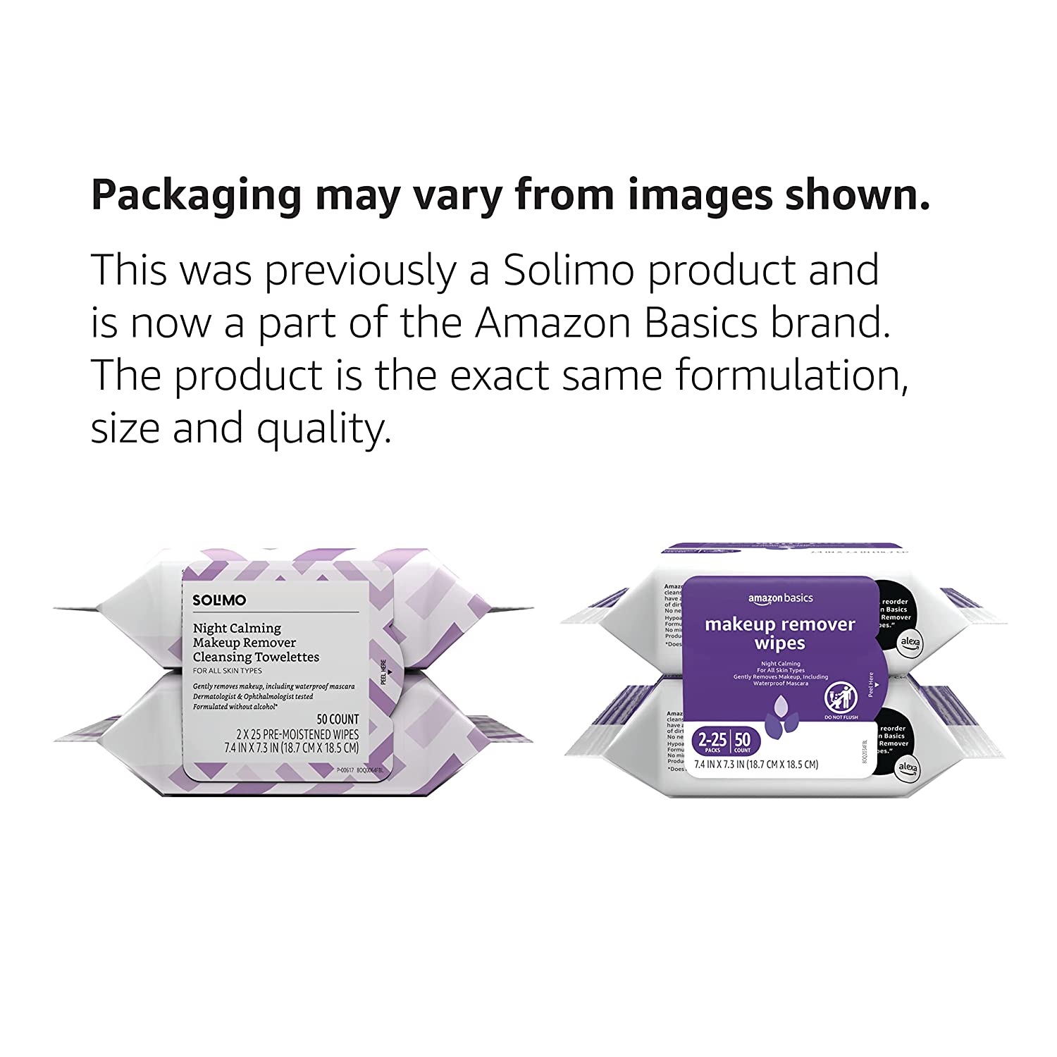 • Six resealable 25-count packs of Amazon Basics Makeup Remover Wipes that cleanse, refresh and moisturize your face