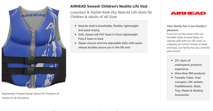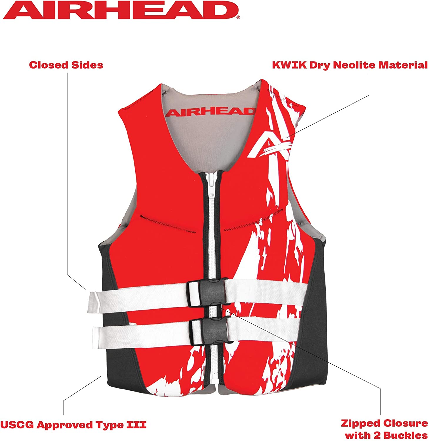 Airhead Swoosh Kwik-Dry Neolite Life Jacket, US Coast Goard Approved Type III Life Jacket, Adult and Youth Sizes